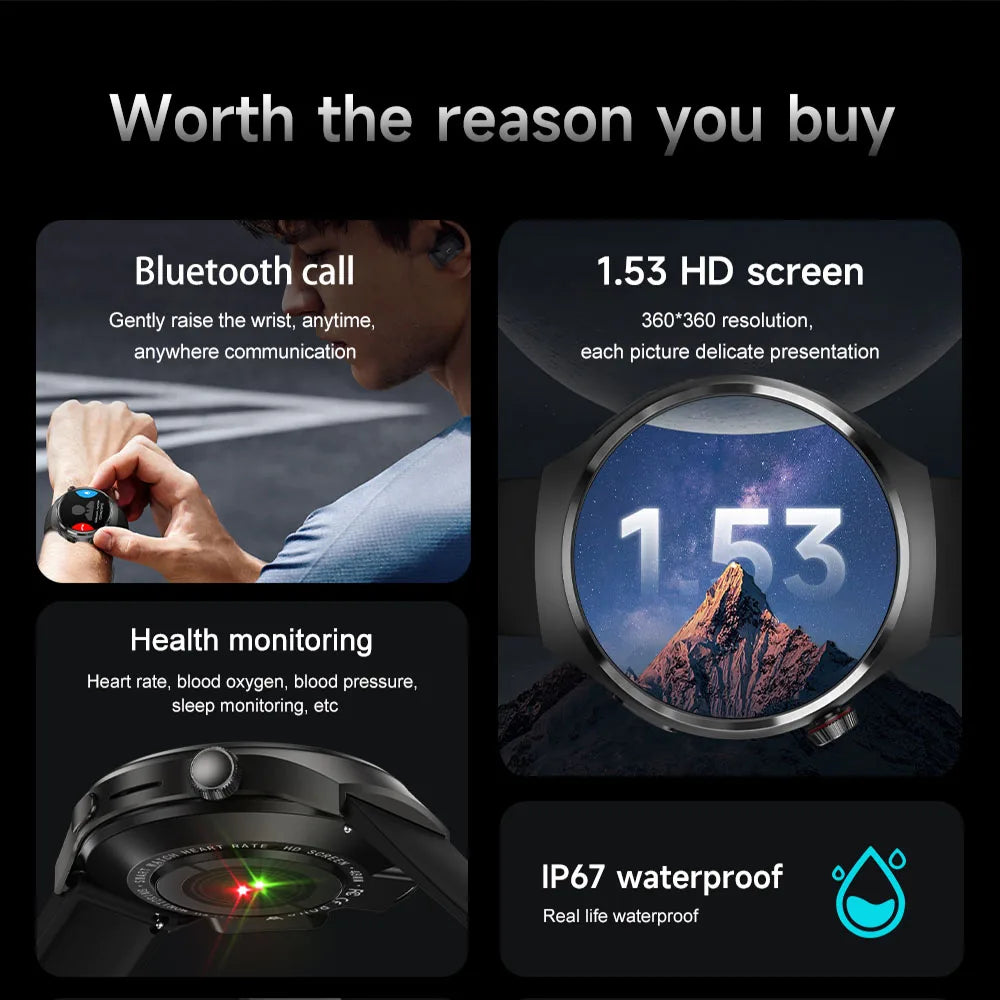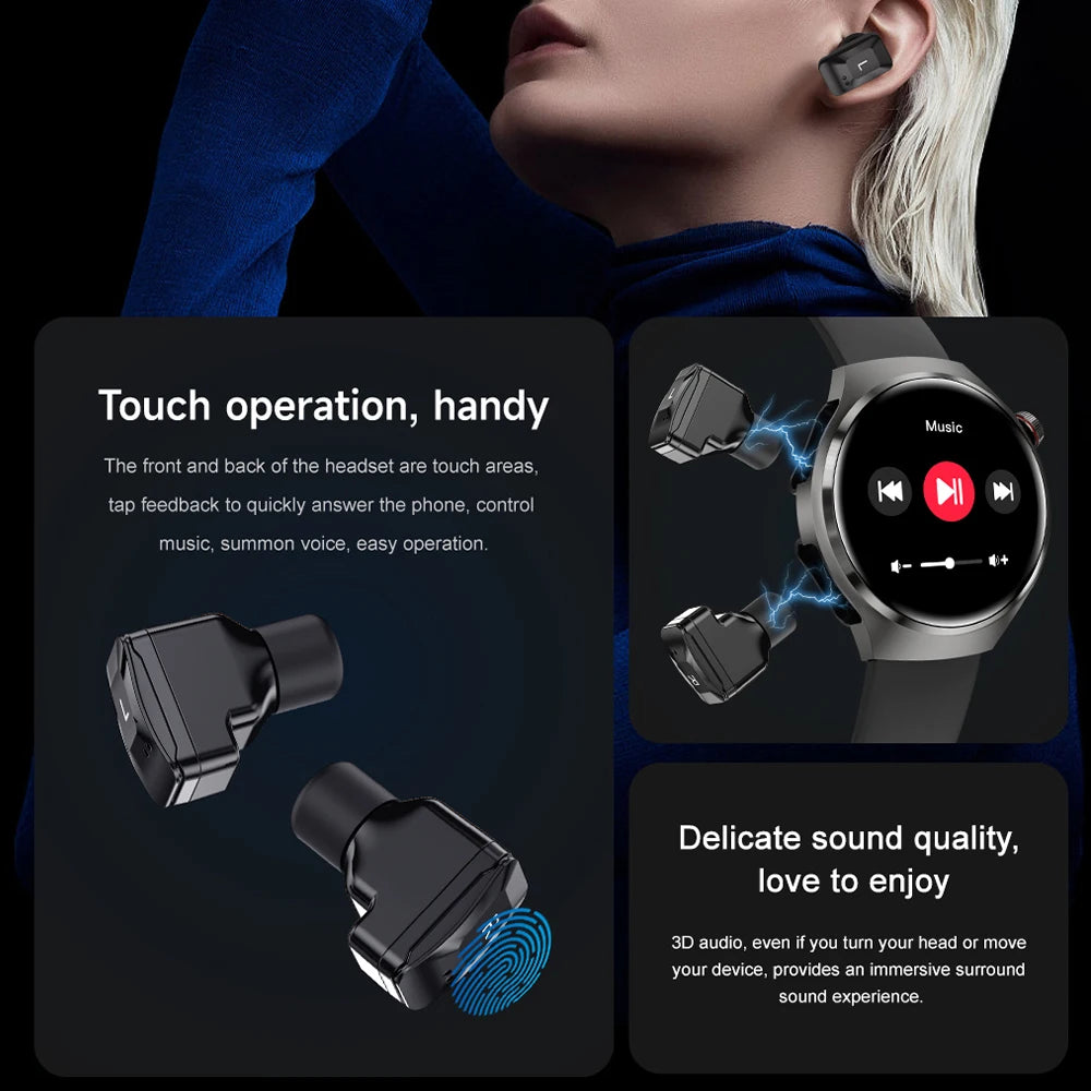 ساعة ذكية 2 في 1 مع سماعات بلوتوث - شاشة عالية الدقة 1.53 بوصة، مكالمات بلوتوث، NFC، GPS، ومتتبع معدل ضربات القلب