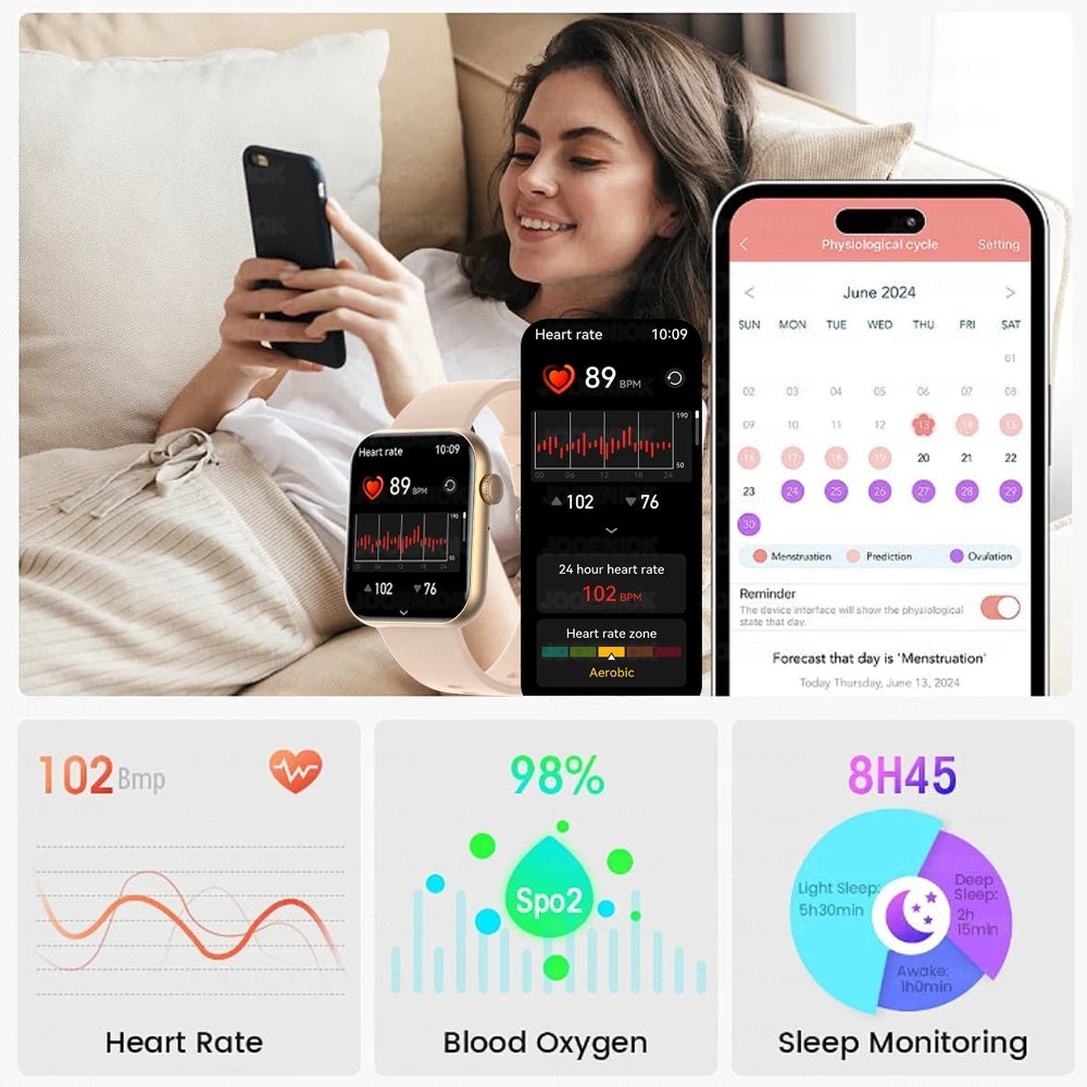 ساعة ذكية 2025 للرجال والنساء - شاشة عالية الدقة 1.9 بوصة، مكالمات بلوتوث، معدل ضربات القلب، مقاومة للماء IP68