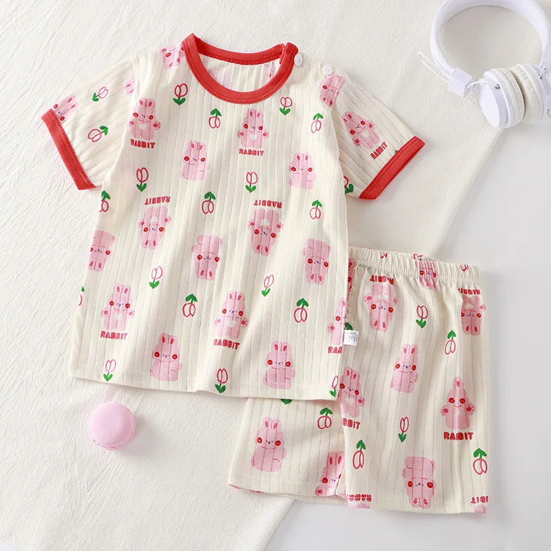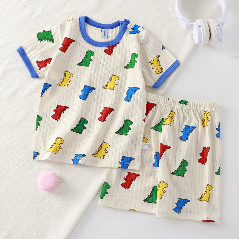 طقم ملابس صيفي للأطفال مكون من قطعتين - تي شيرت قطني + شورت للأولاد والبنات
