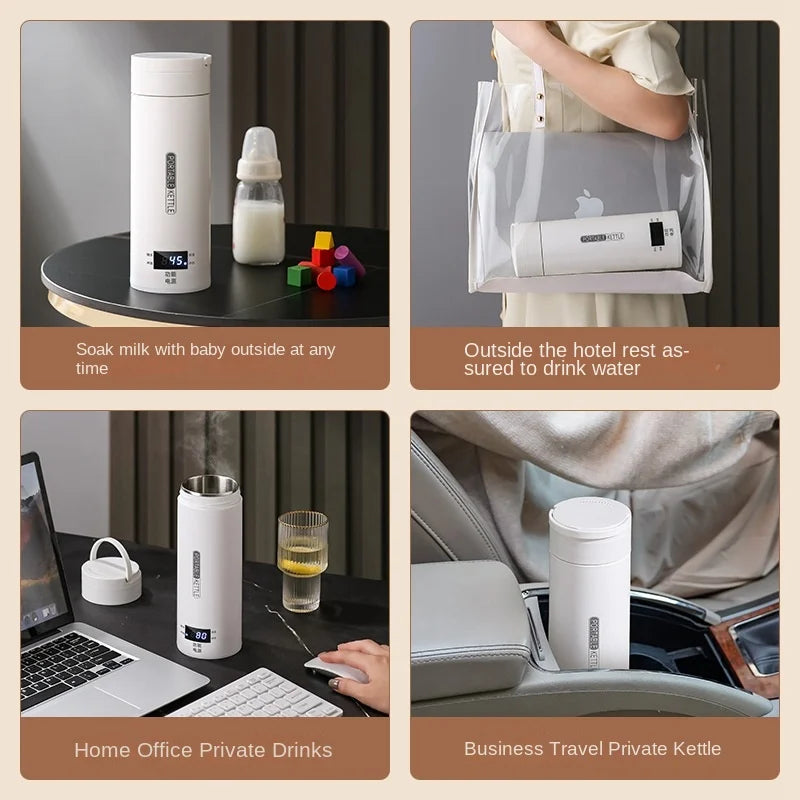 غلاية كهربائية للسفر سعة 500 مل - سخان حليب محمول سريع الغليان للأطفال، زجاجة حرارية من الفولاذ المقاوم للصدأ 304
