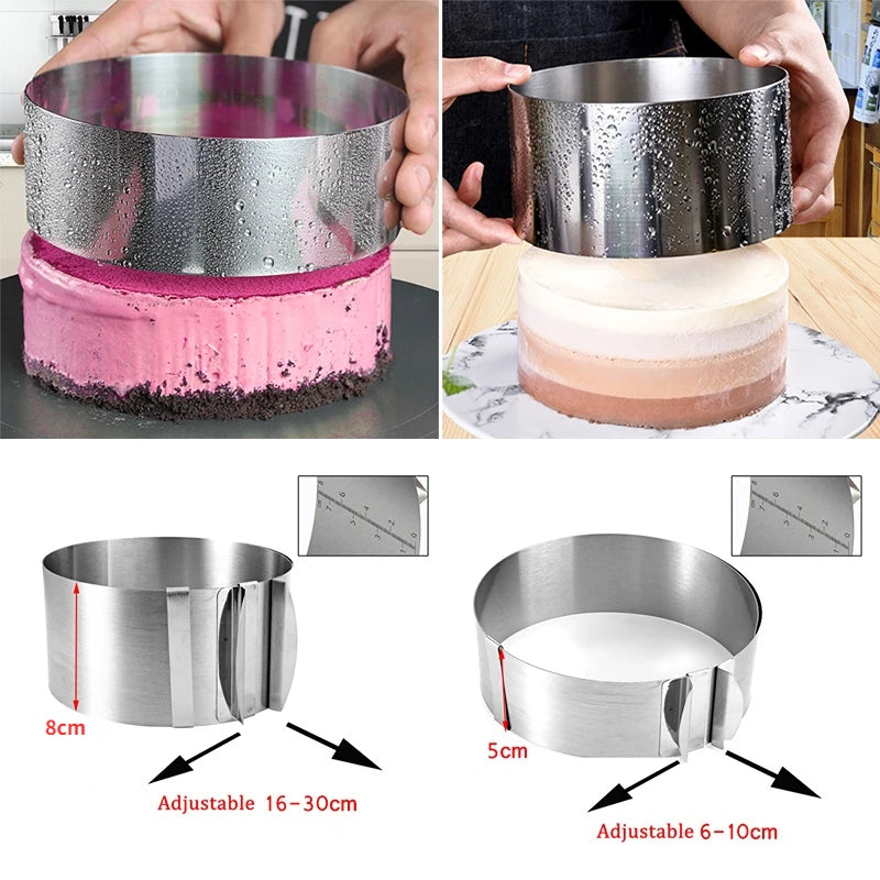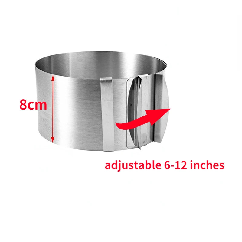 حلقة موس تلسكوبية قابلة للتعديل من الفولاذ المقاوم للصدأ 430 - قالب كيك 6-30 سم مع مقياس