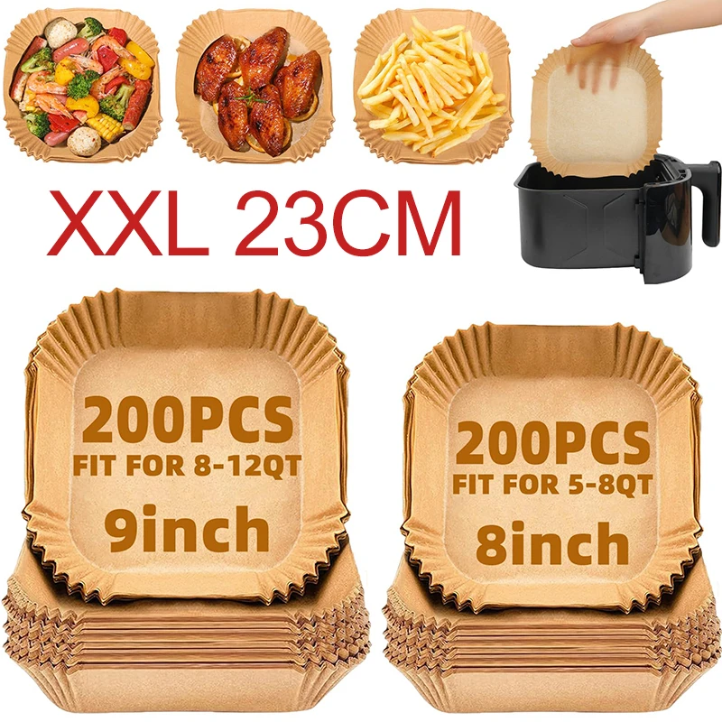 بطانات ورقية للاستخدام مرة واحدة في مقلاة الهواء - صواني خبز غير لاصقة مربعة ودائرية لكوسوري ونينجا
