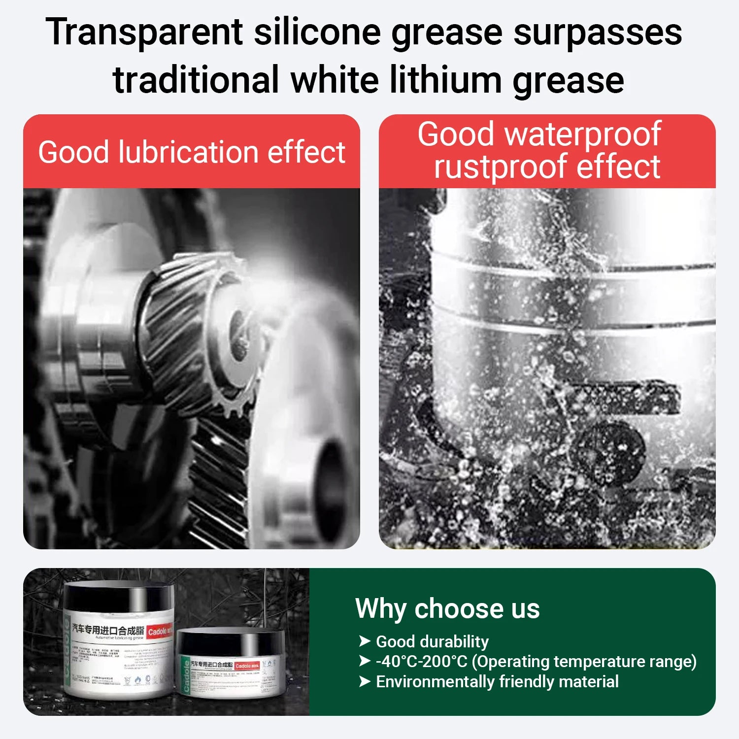 Function: noise reduction, high and low temperature resistance, extreme pressure and anti-wear, long-lasting lubrication