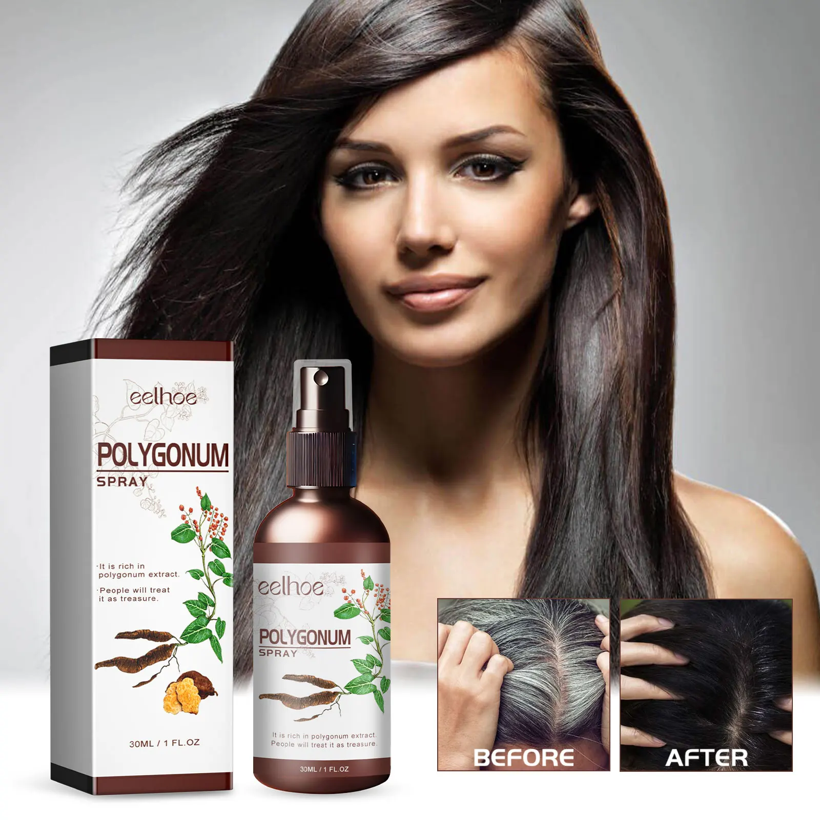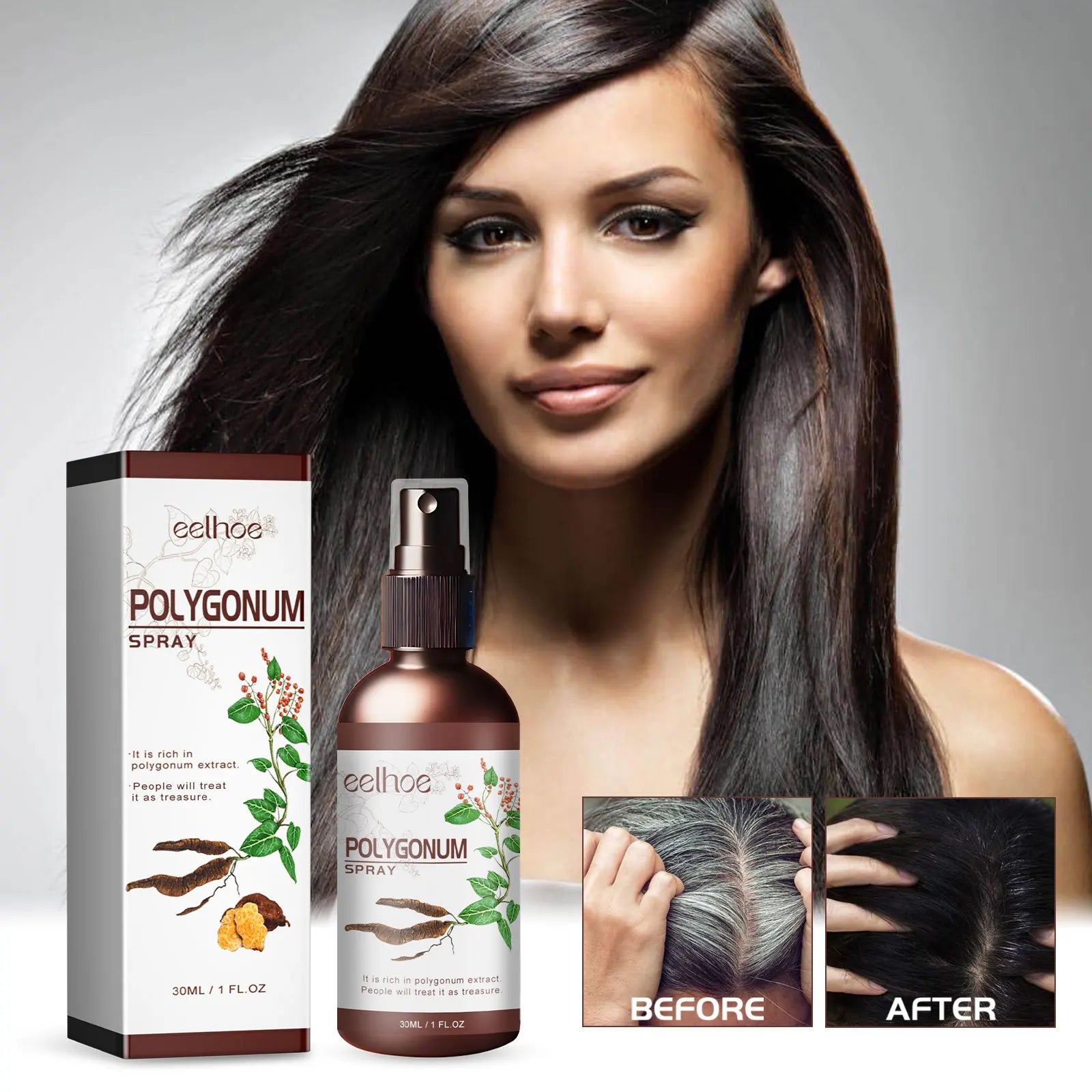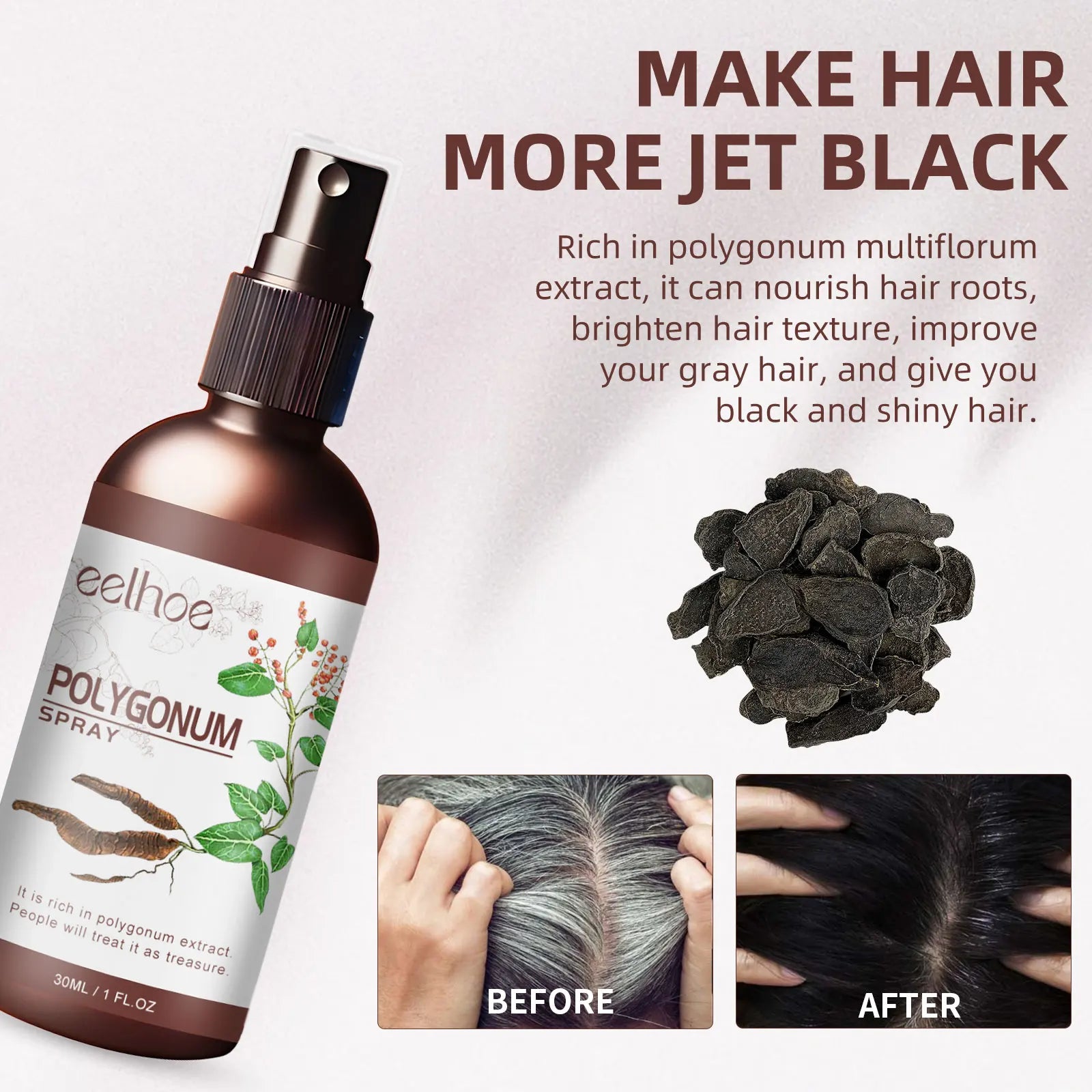 بخاخ الشعر الأسود من EELHOE - سيروم Polygonum Multiflorum من الأبيض إلى الأسود
