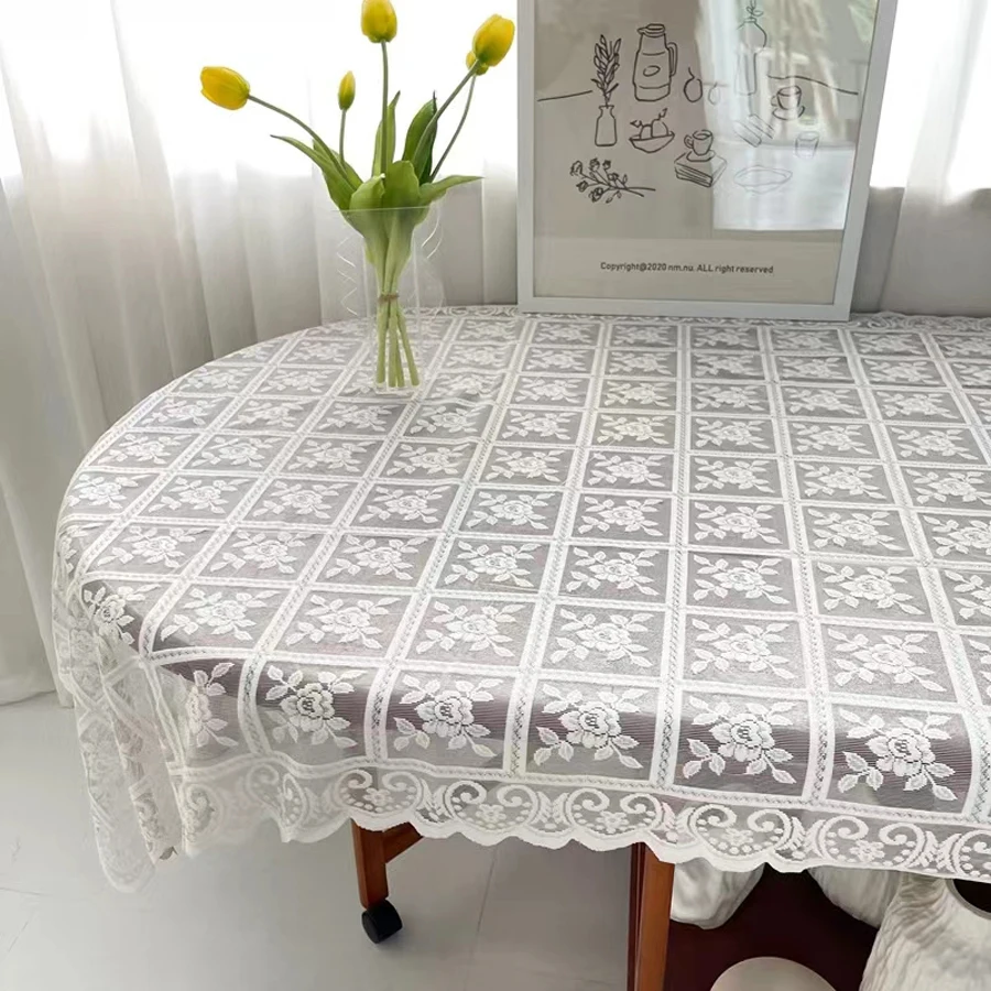 مفرش طاولة أنيق من الدانتيل المطرز على الطراز العتيق - عملية قص الأزهار بلون واحد، مفرش طاولة مربع مصنوع من البوليستر بنسبة 100%