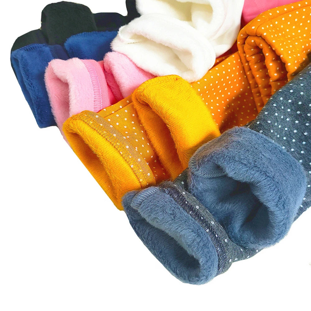 Girls Velvet Leggings Dot Print Warm Pants Autumn Winter Kids Cotton Trousers