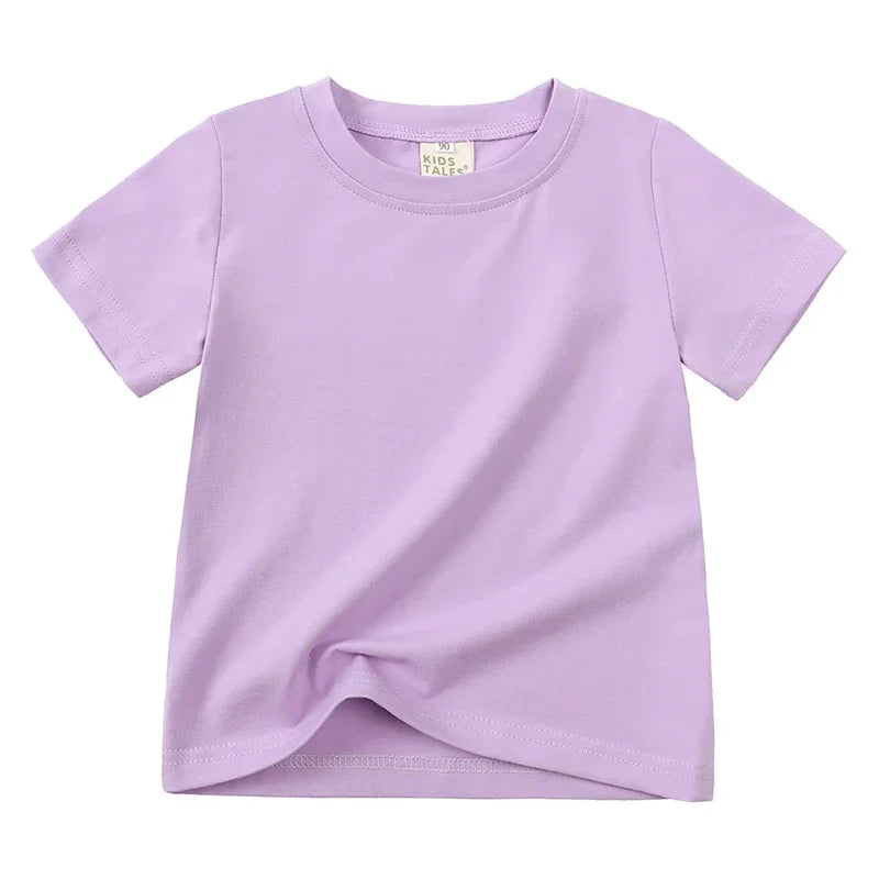 تي شيرت قطني للأطفال - صيف 2025، لون سادة، قابل للتنفس، بأكمام قصيرة، مناسب للأطفال الرضع والأطفال الصغار والمراهقين (12 شهرًا - 9 سنوات)