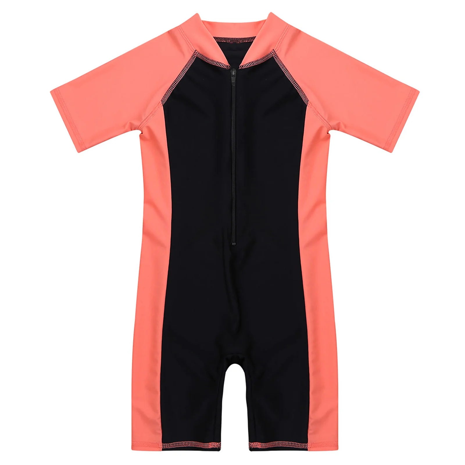 Kids Short Sleeve Wetsuit Boys Girls Zippered Swimwear Shorty Bodysuit