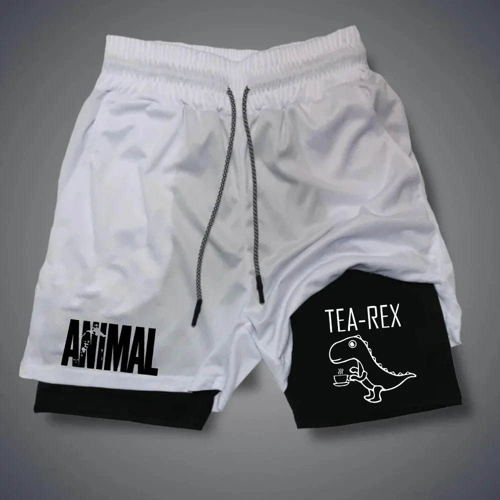 شورت رجالي بطبعة بطة كرتونية - شورت سريع الجفاف مزدوج الطبقات للصيف والشاطئ واللياقة البدنية