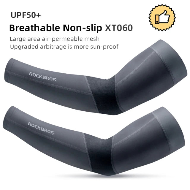 كم ذراع ROCKBROS - قابل للتهوية، سريع الجفاف، حماية من الأشعة فوق البنفسجية، كم ذراع رياضي لركوب الدراجات - مصنوع من قماش جليدي، واقي من الشمس، ملابس لياقة بدنية