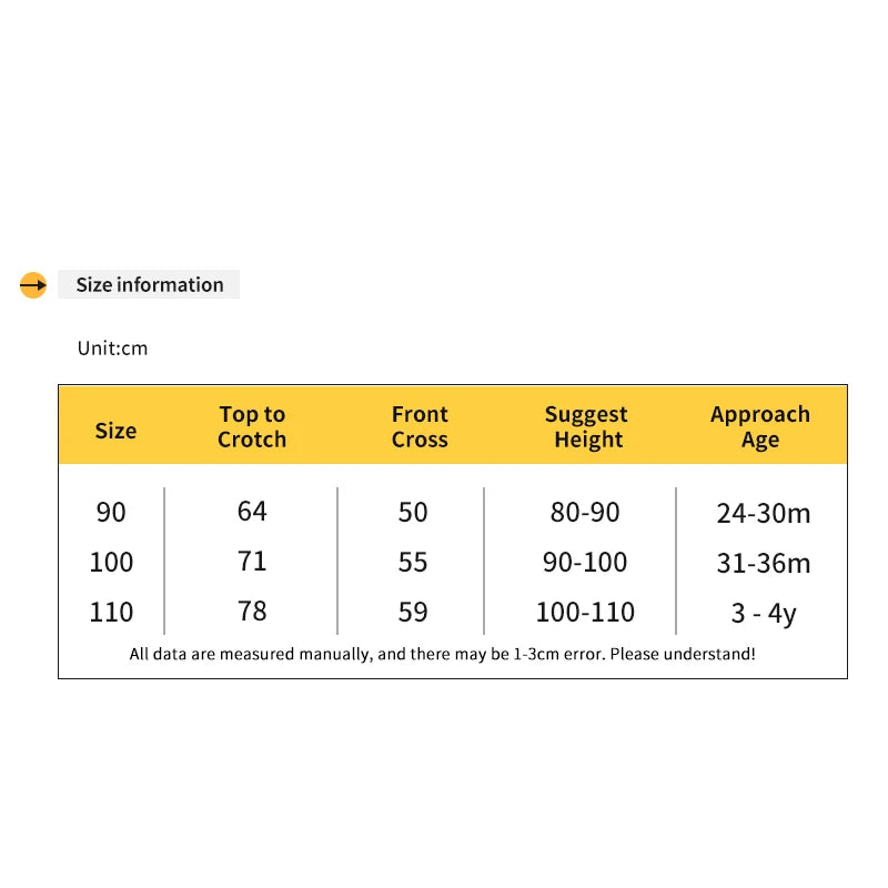 من الأعلى إلى المنشعب 64، الصليب الأمامي 50، الارتفاع 80-90 سم، العمر 24-30 شهرًا