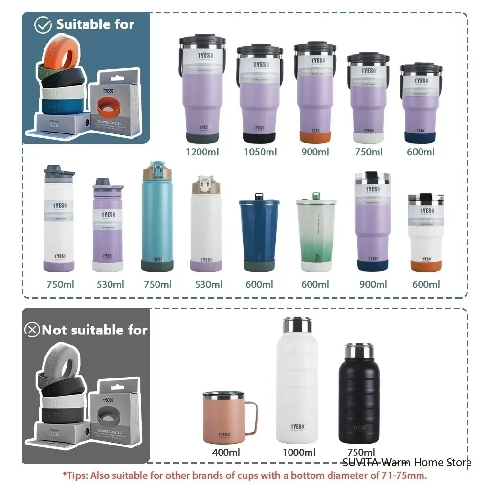 1 قطعة غطاء سفلي مضاد للانزلاق من السيليكون العالمي لزجاجة المياه Tyeso غطاء سفلي لزجاجة المياه بقطر 71 مم إلى 77 مم