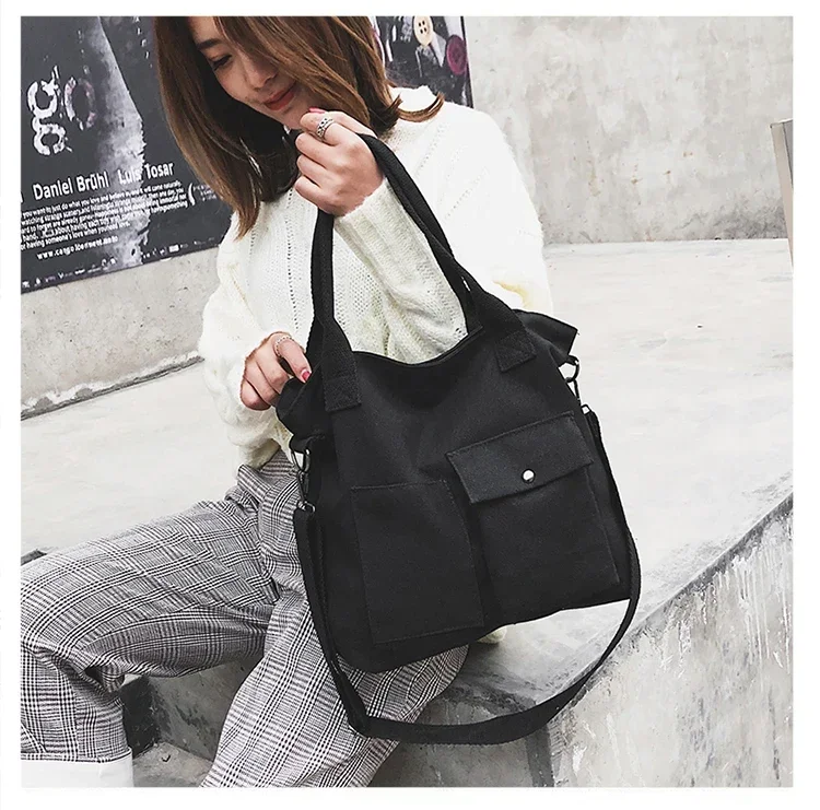 حقيبة قماش نسائية • حقيبة كتف وحقيبة كروس كبيرة السعة • حقيبة تسوق عادية للطلاب والاستخدام اليومي