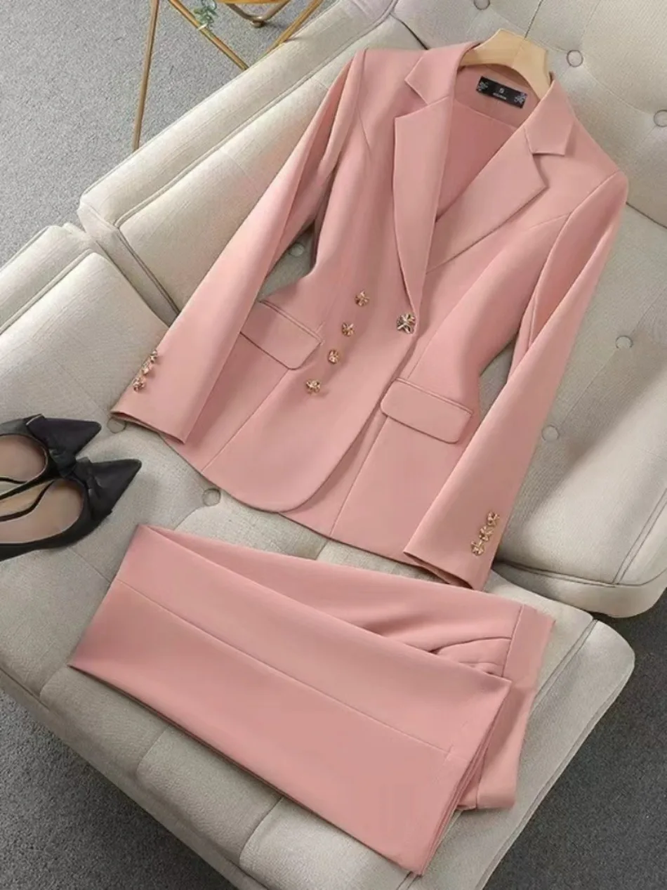 Damen-Hosenanzug, einfarbig, zweiteilig – Modisches Business-Set