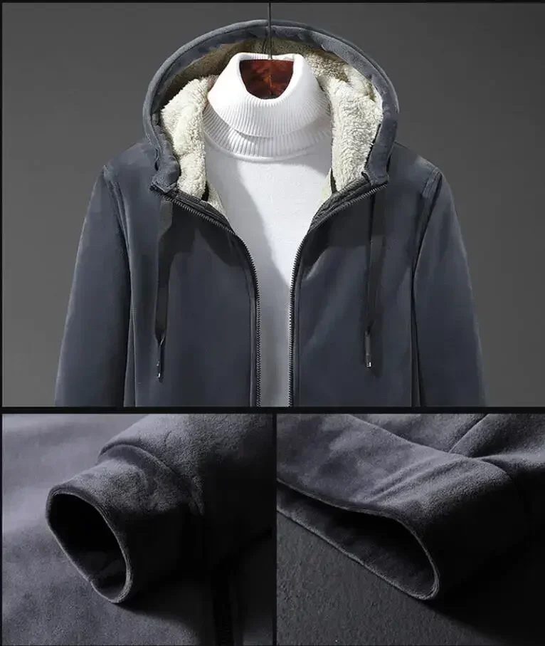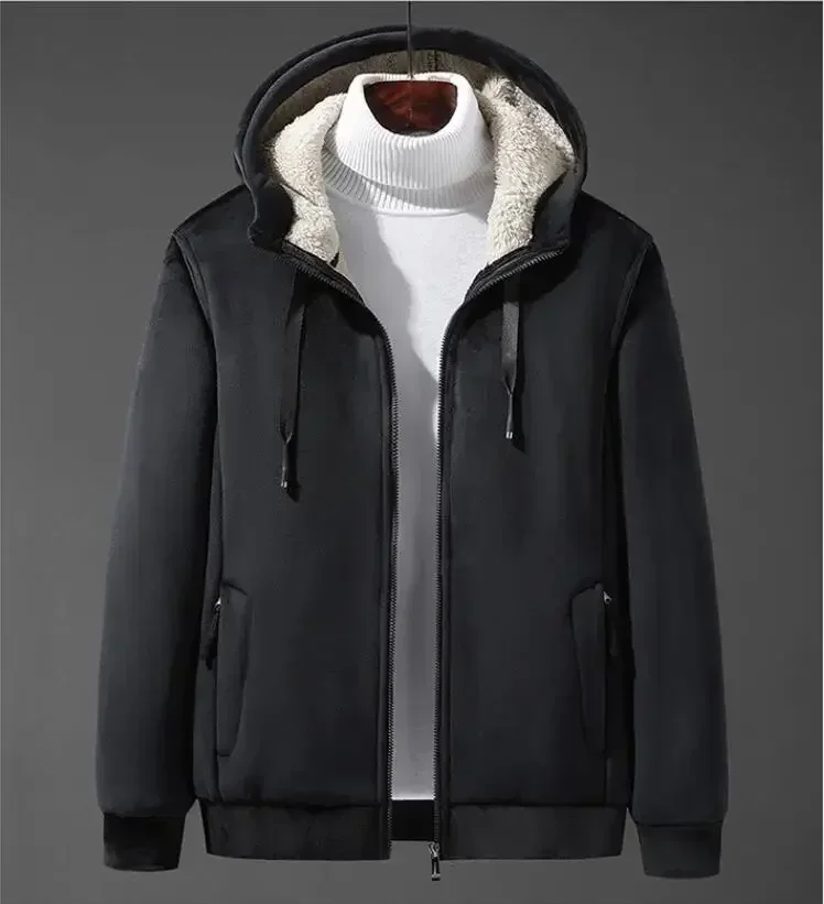 Men’s Lamb Wool Hooded Hoodie – Thick Cashmere Sweatshirt, Plus Size Winter Coat (Up to 8XL)