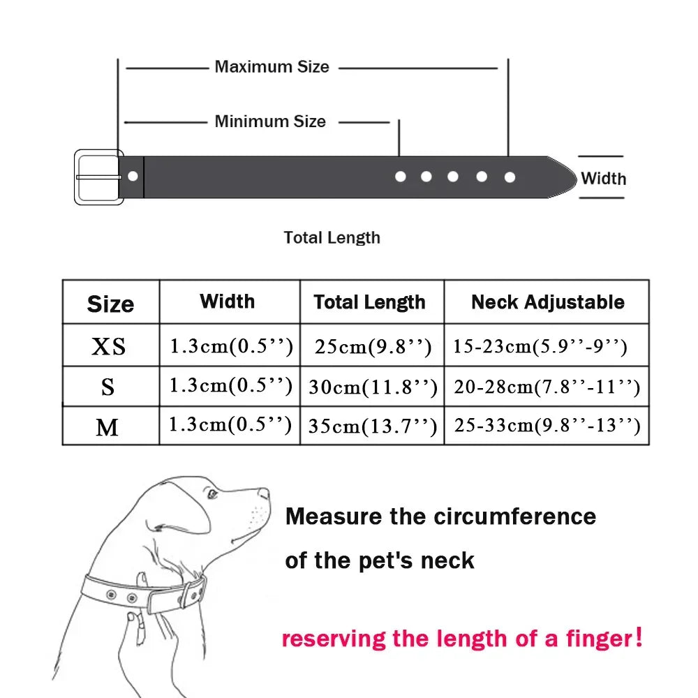 Collar de perro personalizado con diamantes de imitación: cuero sintético ajustable en 16 colores para perros pequeños y chihuahuas.