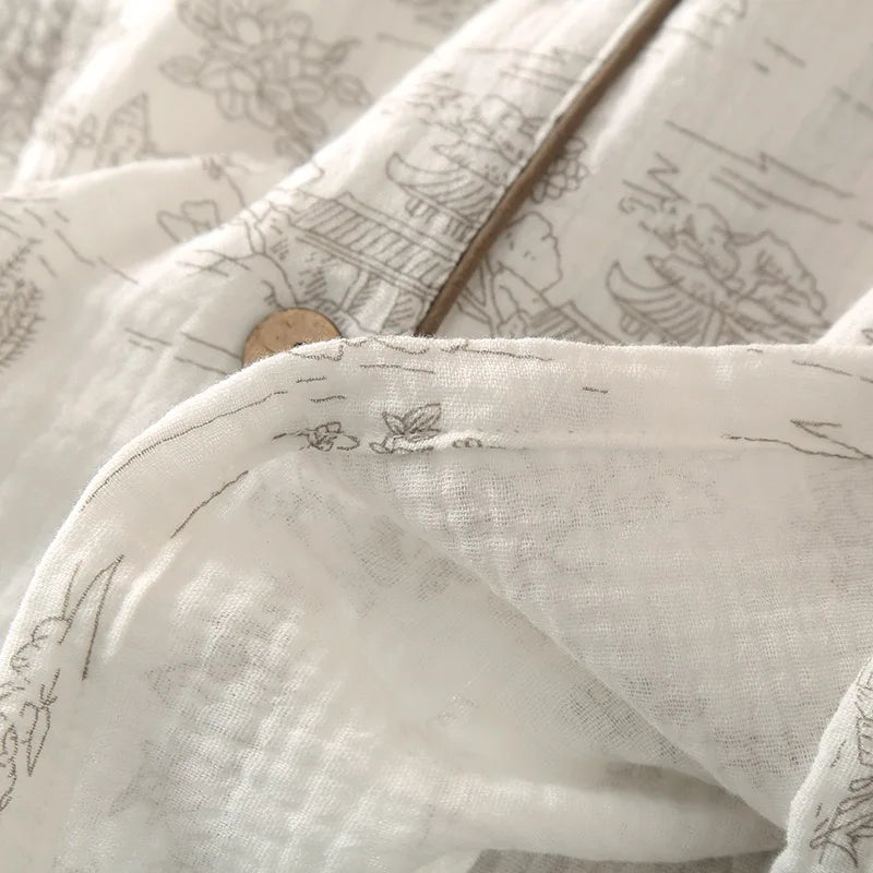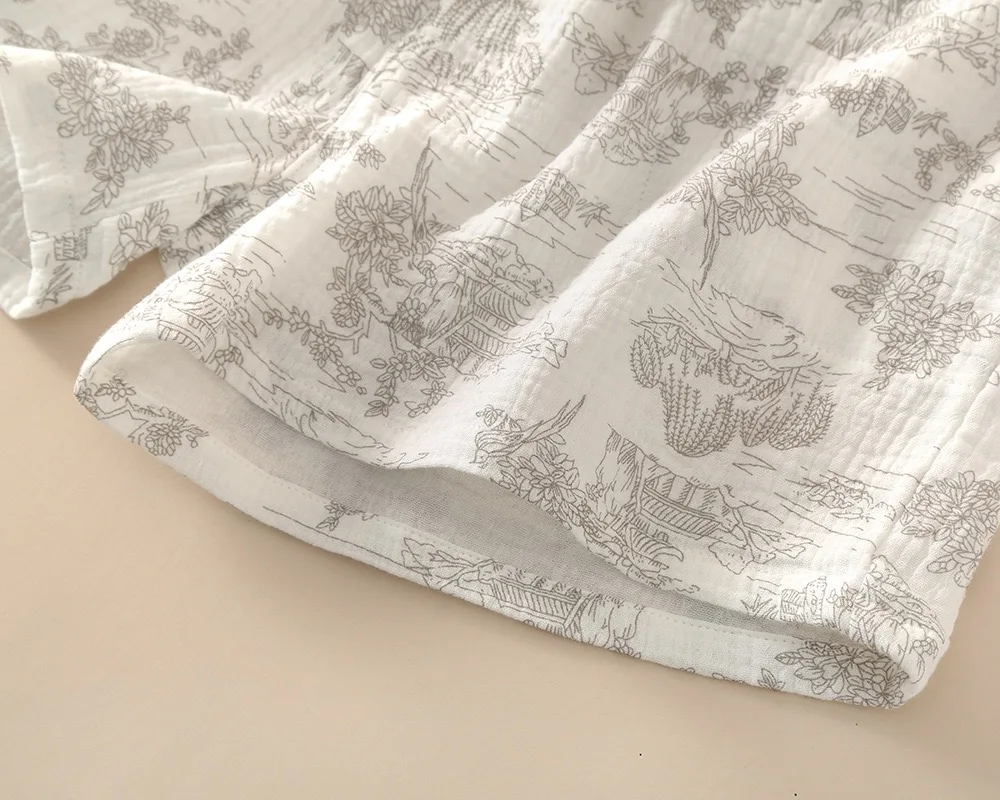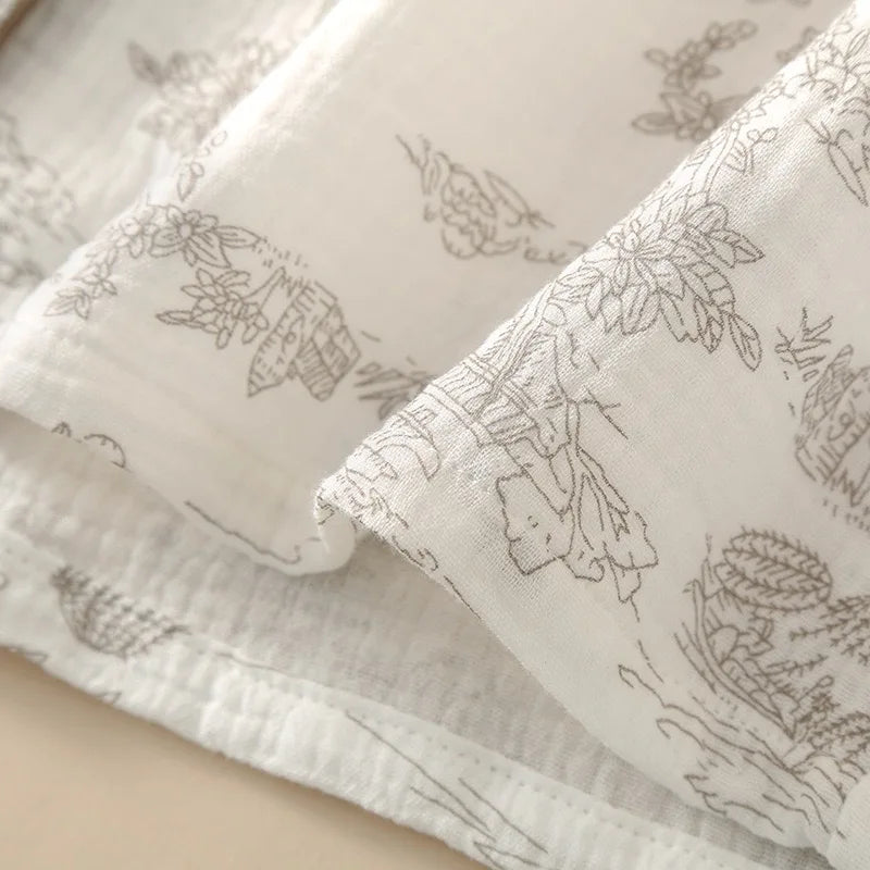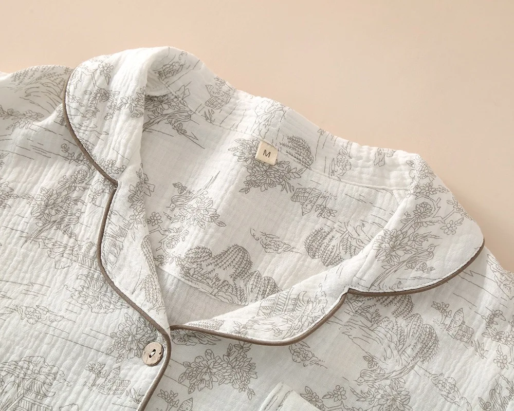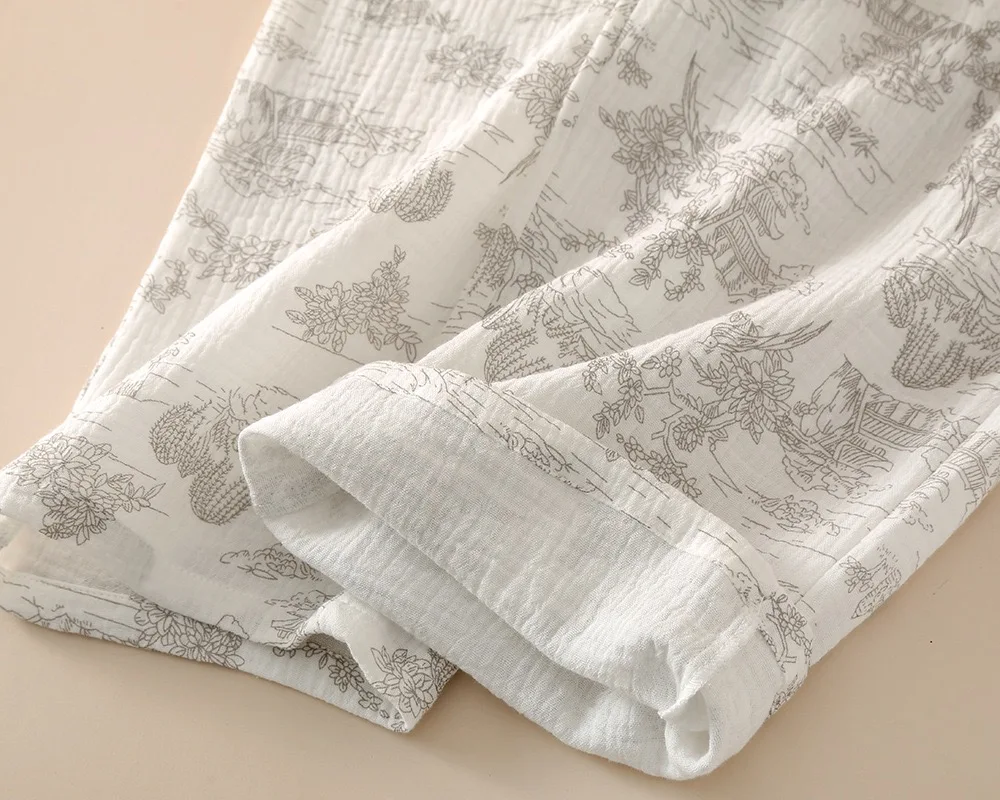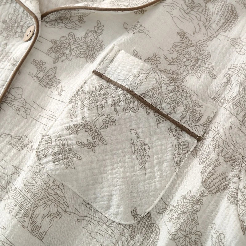 Summer Women's Pajama Set | 3-Piece 100% Gauze Cotton Sleepwear with Short Sleeve Top, Long Pants & Shorts
