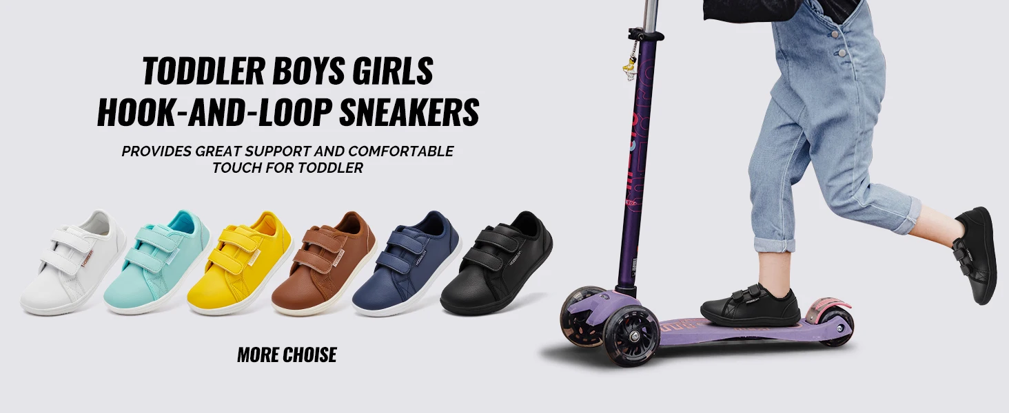 HOBIBEAR Kids Barefoot Sneakers – Minimalist Wide Toe Shoes with Hook & Loop | Artificial Leather