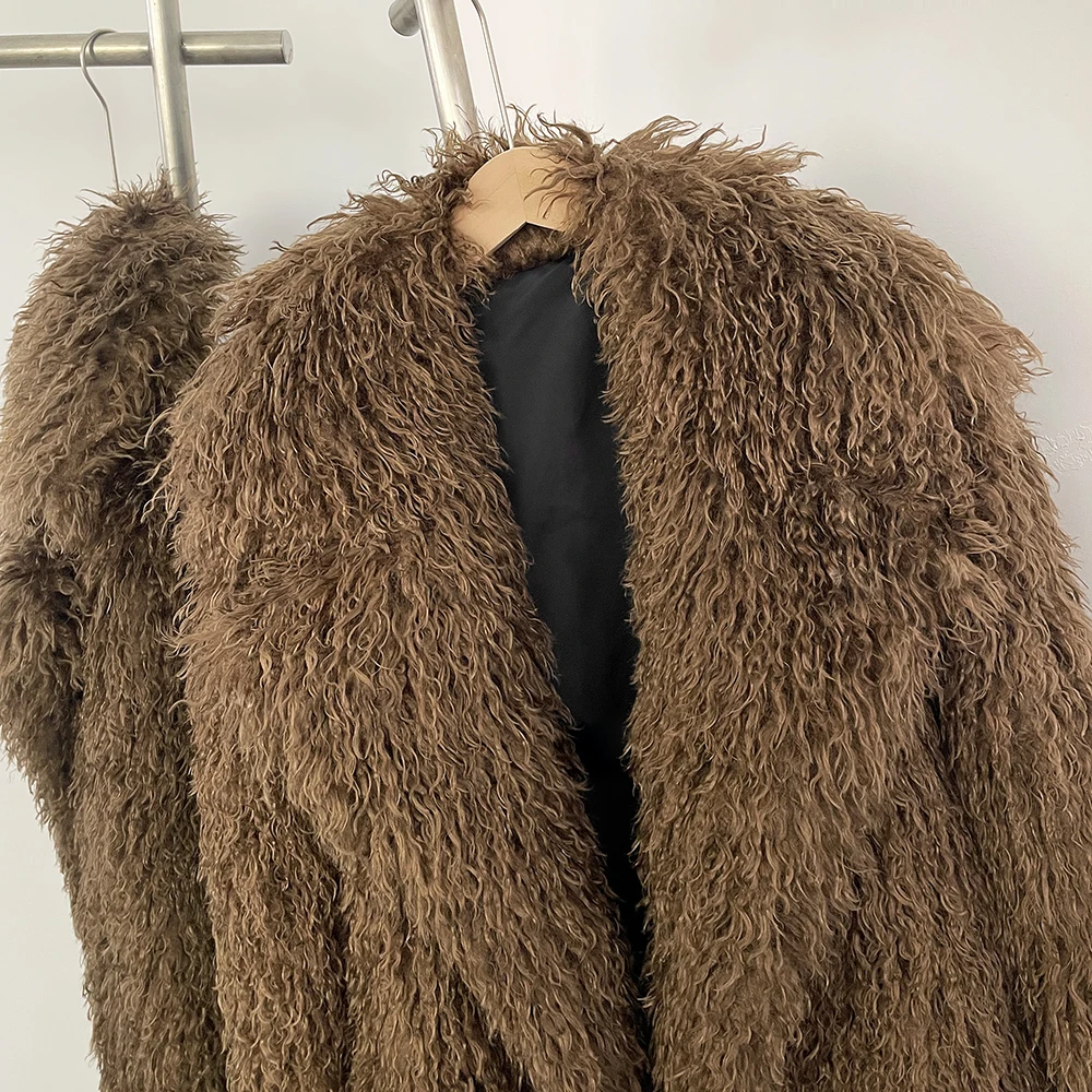 New Winter Women's Faux Mongolia Sheep Fur Coat Warm Thick Long Sleeve Artificial Fur Jacket
