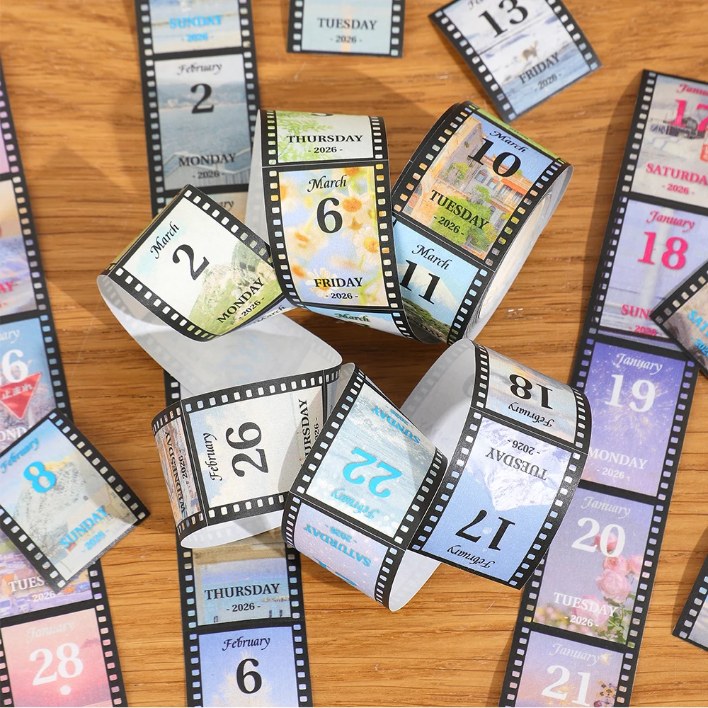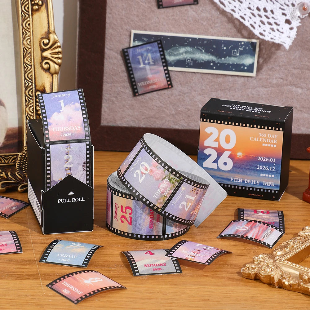 2026 Washi Tape Calendar – Vintage Film Daily Pull-Out Sticker Calendar with 365-Day Aesthetic Tape