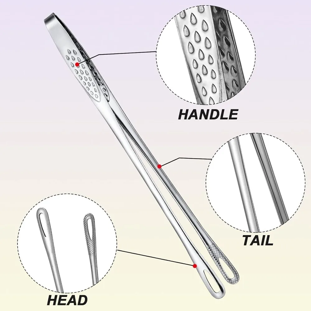 Stainless Steel Korean BBQ Food Clips – Extended Kitchen Tongs for Meat & Vegetables