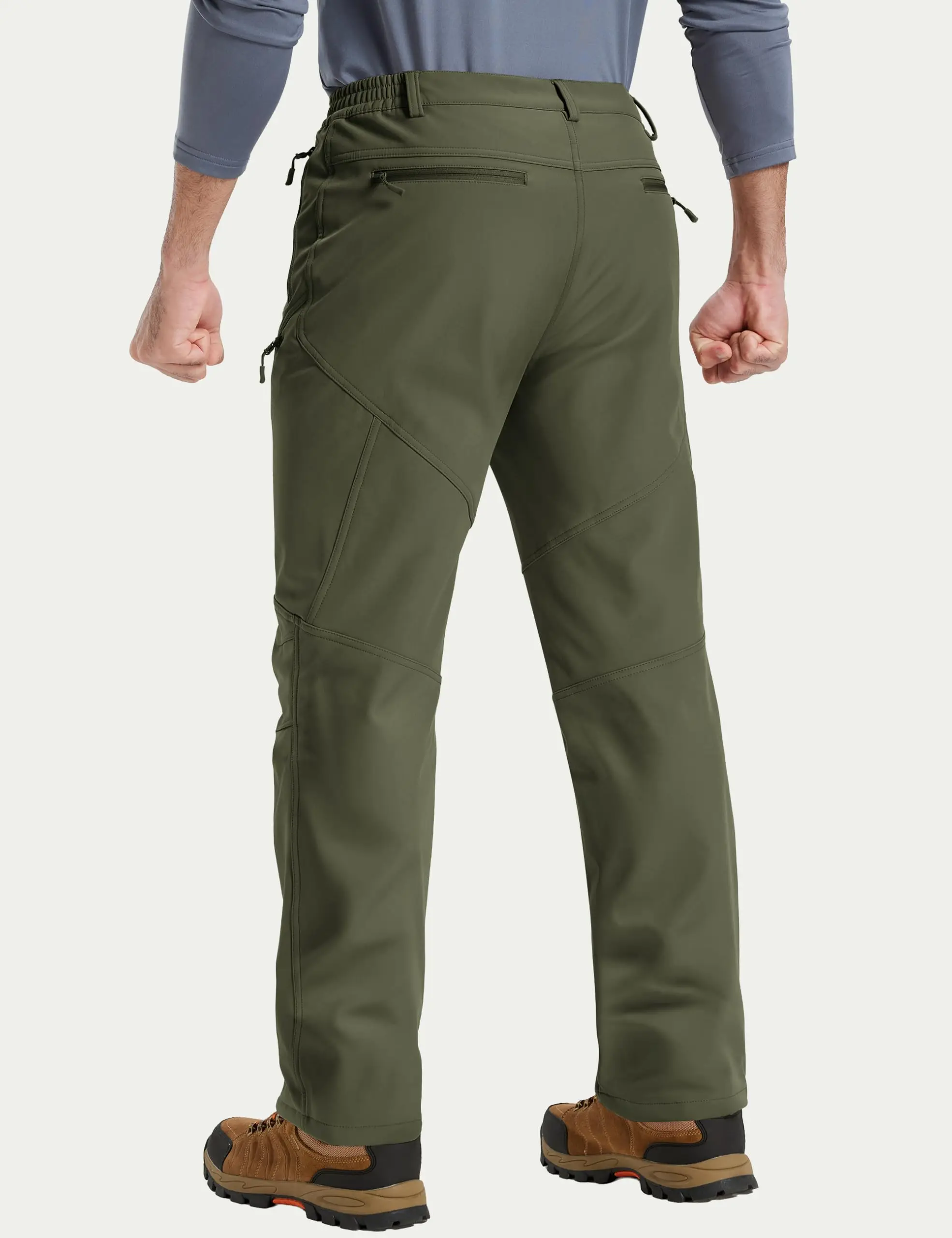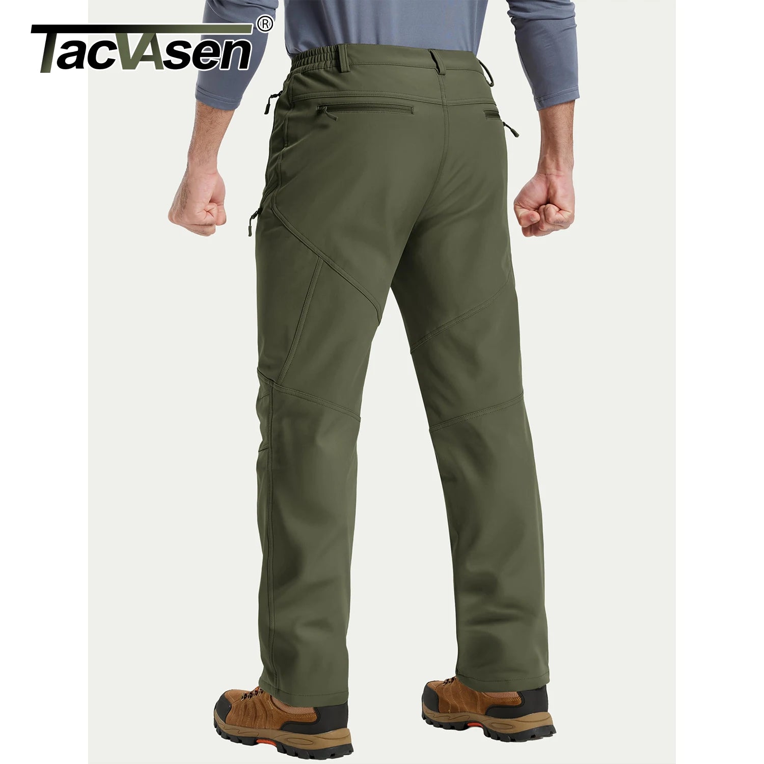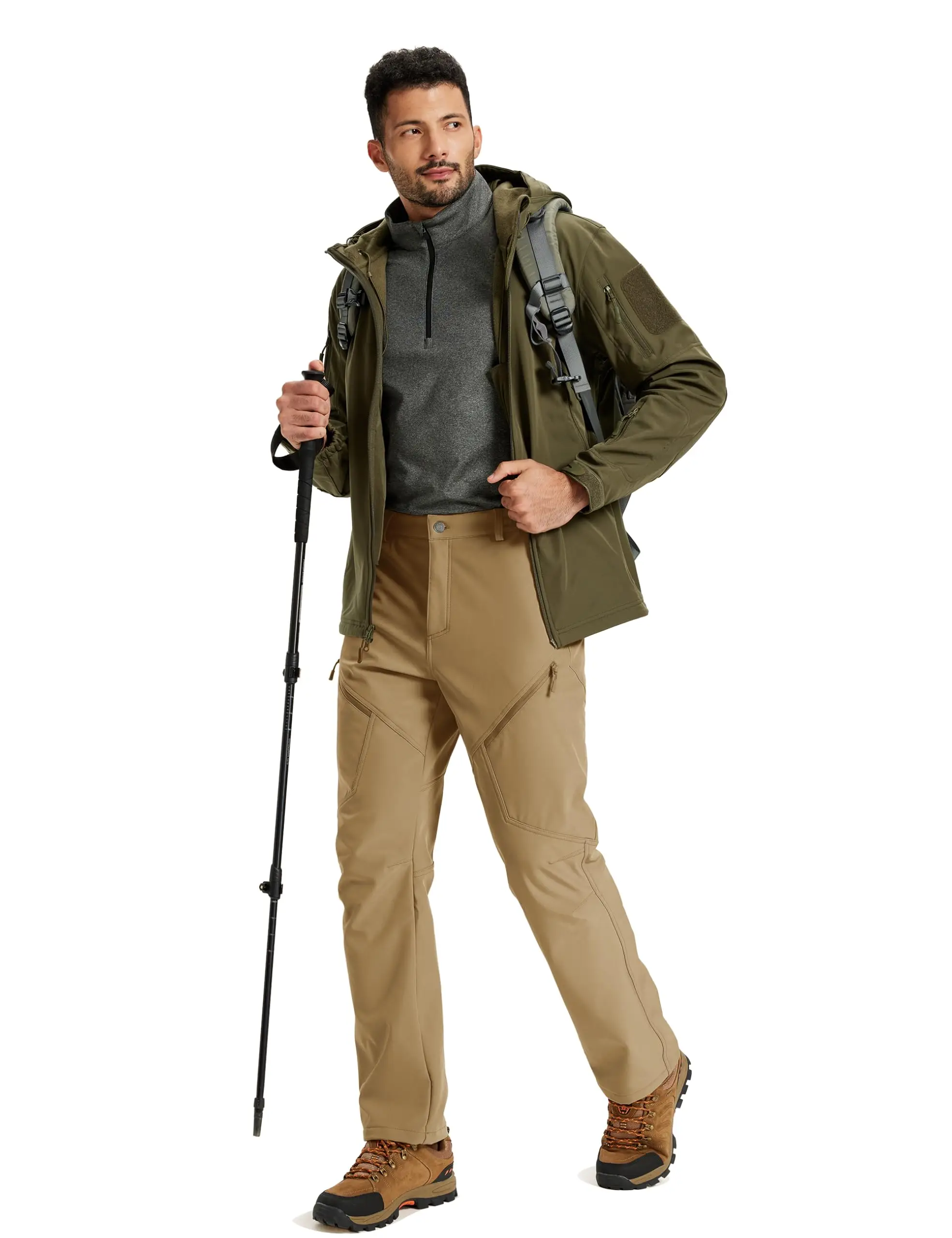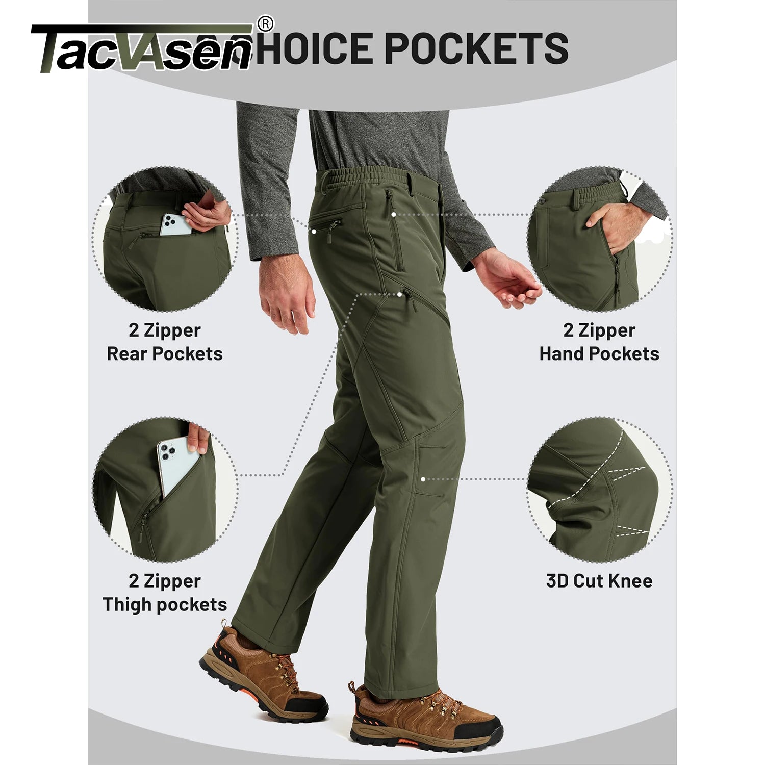 TACVASEN Men’s Fleece-Lined Waterproof Softshell Pants – Winter Hiking Snow Ski Cargo Trousers with 6 Zip Pockets