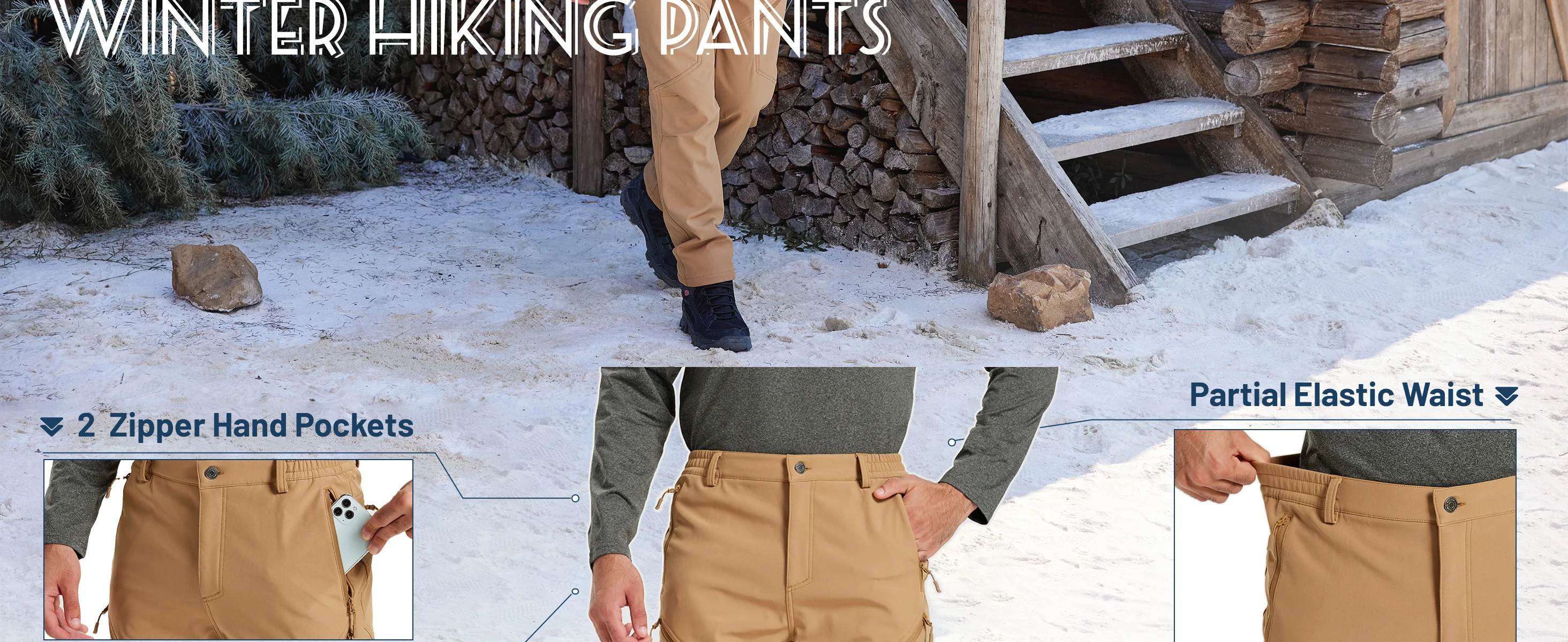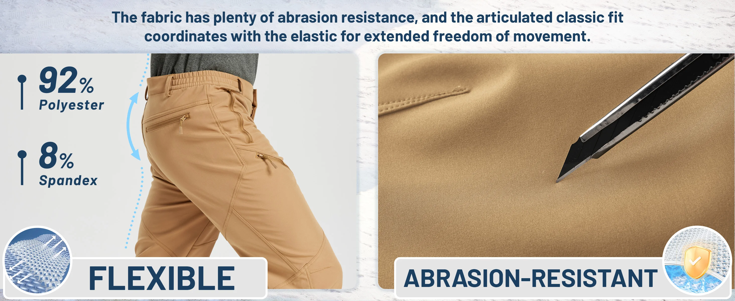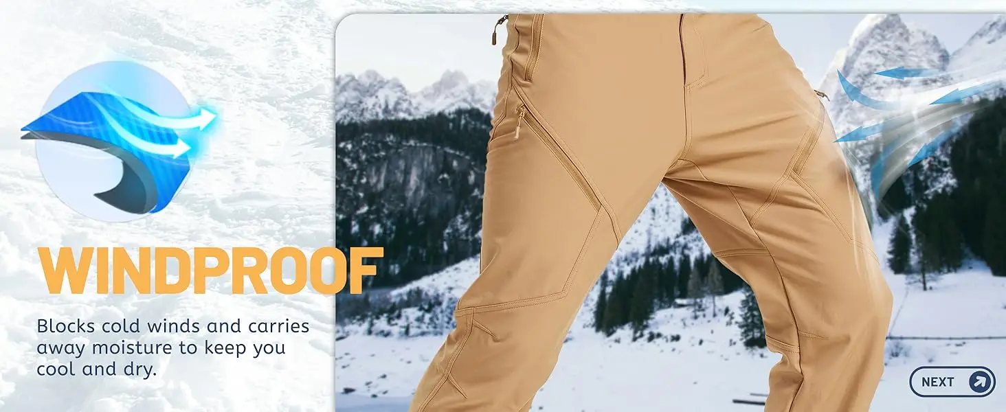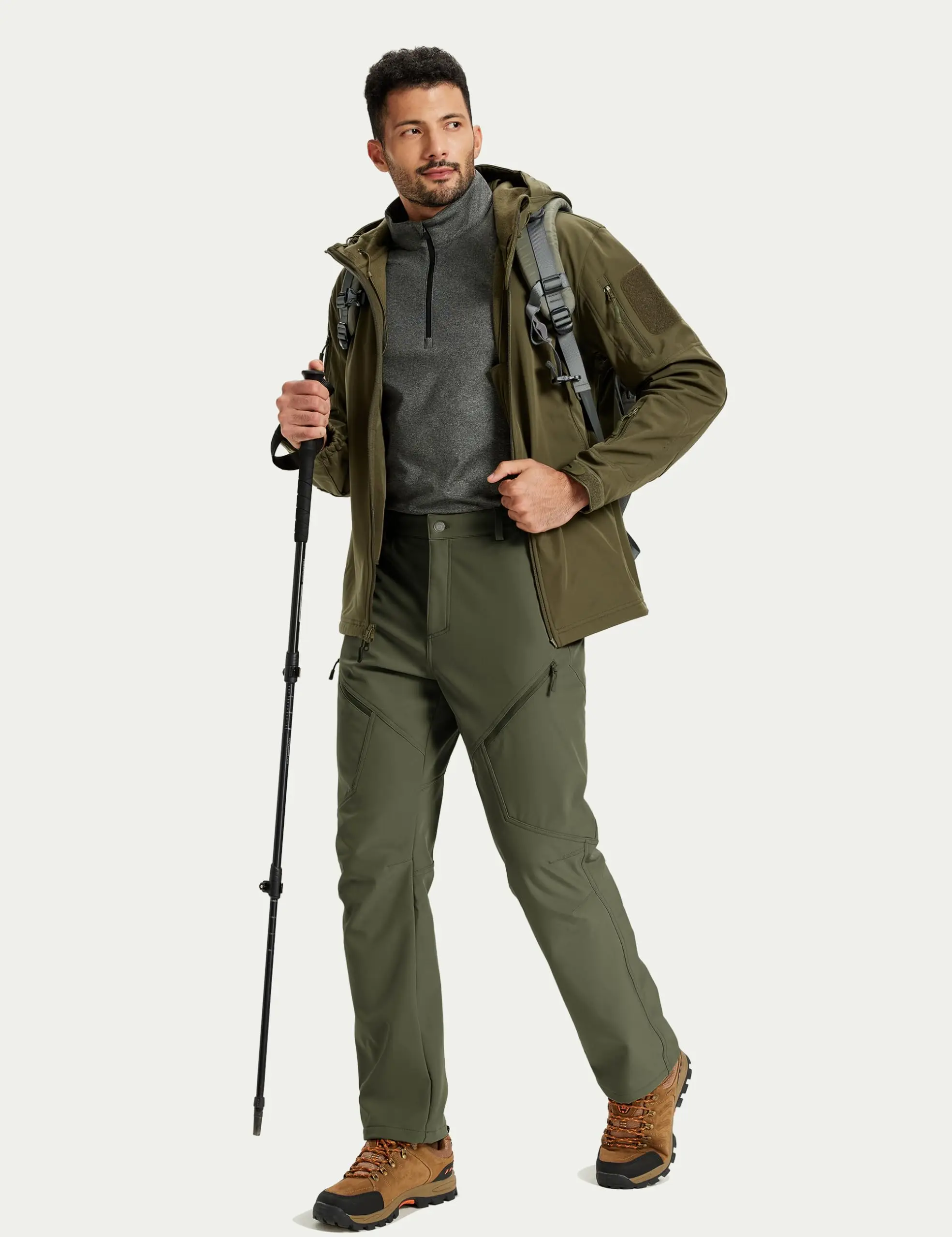 TACVASEN Men’s Fleece-Lined Waterproof Softshell Pants – Winter Hiking Snow Ski Cargo Trousers with 6 Zip Pockets