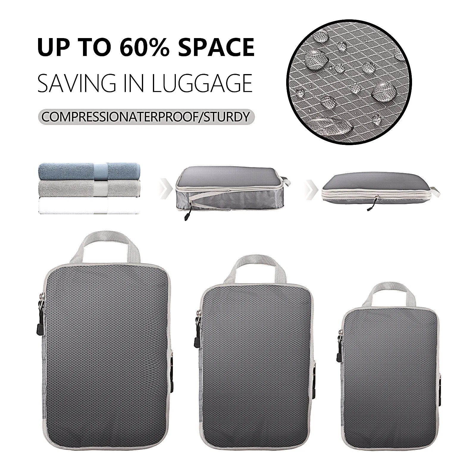 3-7 PCS Compressed Packing Cubes Set | Lightweight Portable Travel Luggage Organizer with Shoe Bag & Mesh Storage