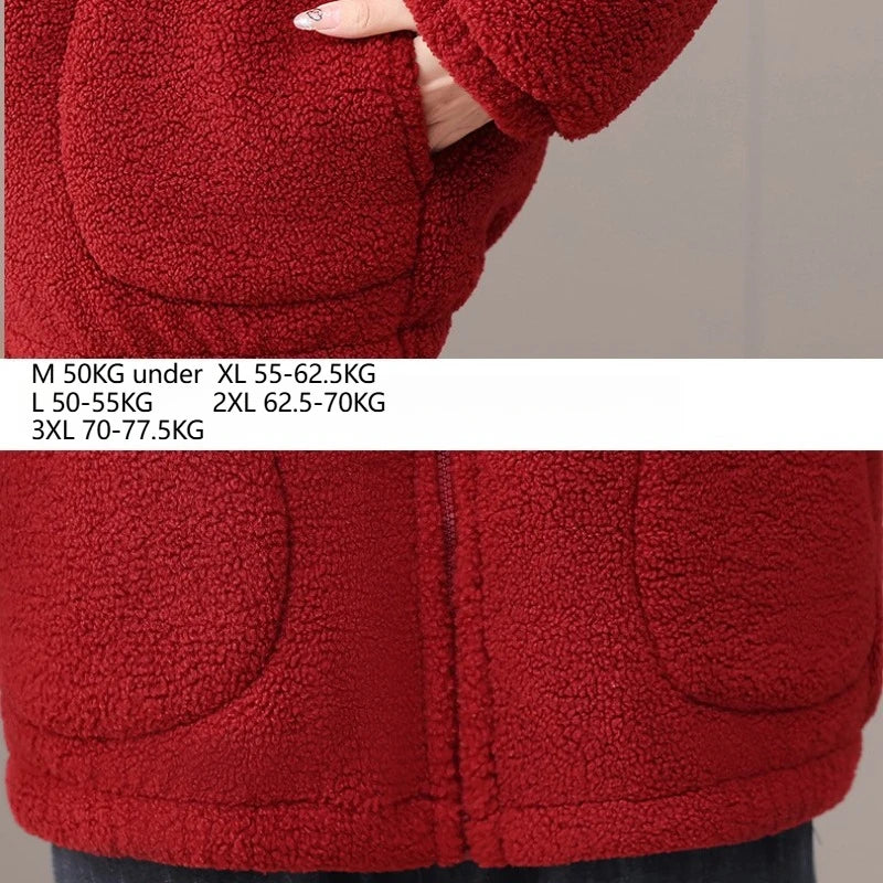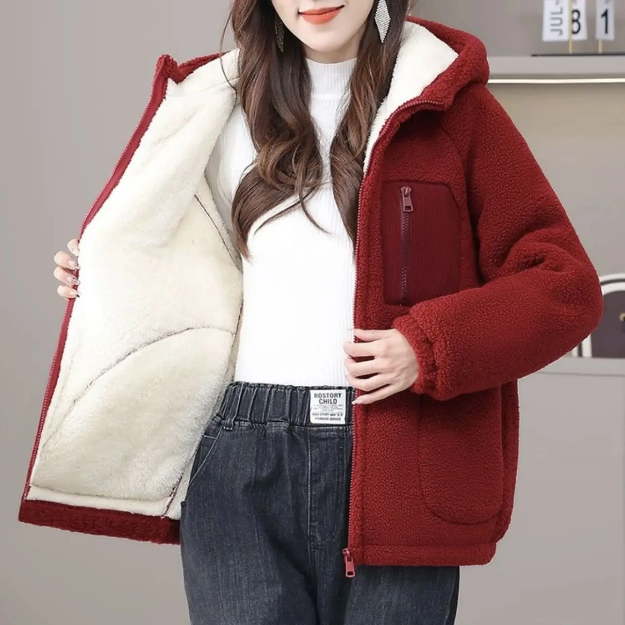 Winter Sherpa Fleece Coat Patchwork Pocket Wool-Lined Thickened Women's Plush Thermal Full Zipper Outerwear