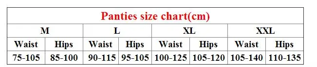 This panties size information is just for reference only.Please compare the detail sizes with yours before you buy.Please allow 1-2 CM differs due to manual measurement.