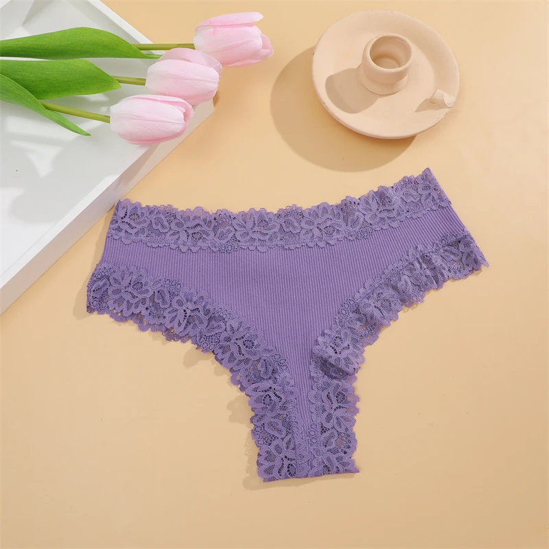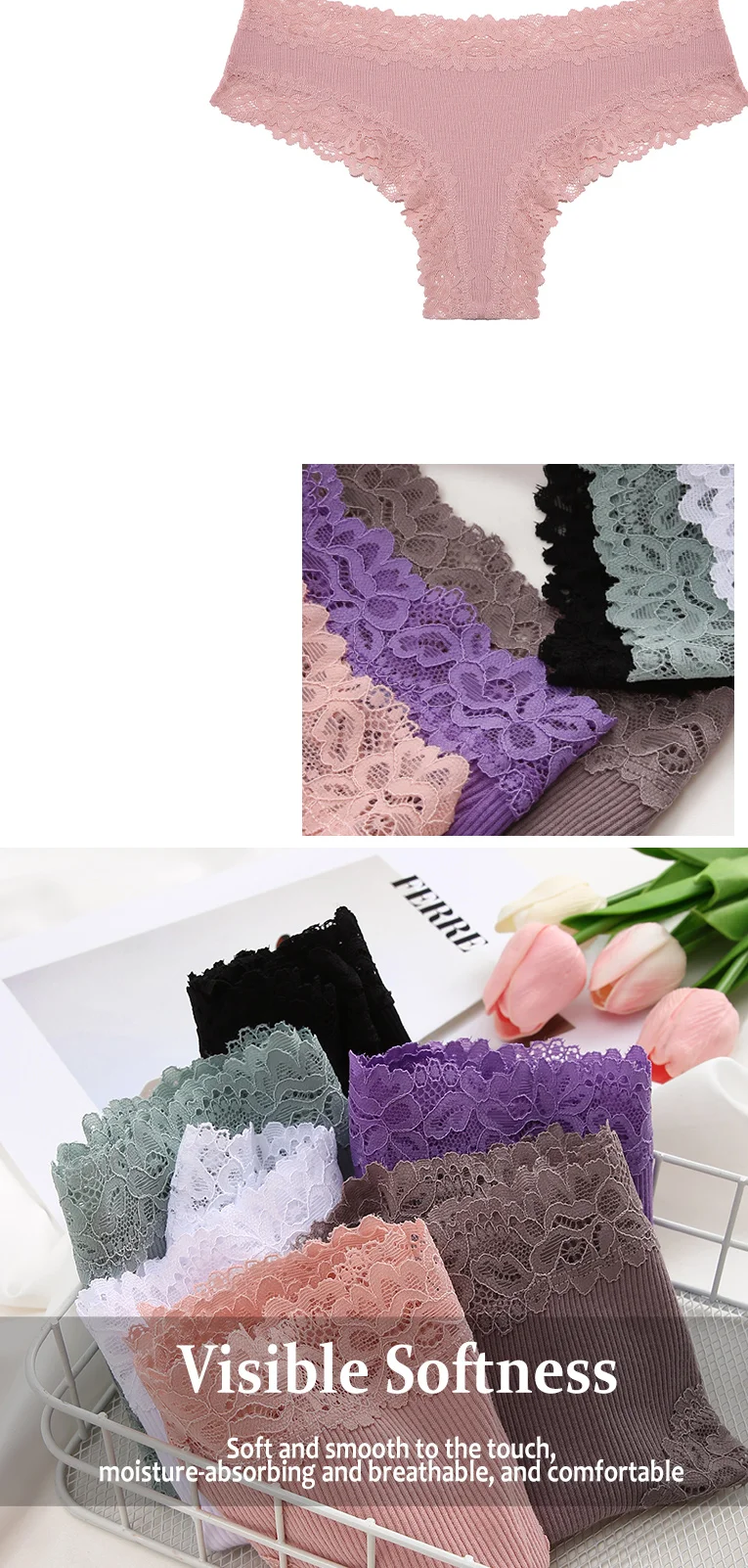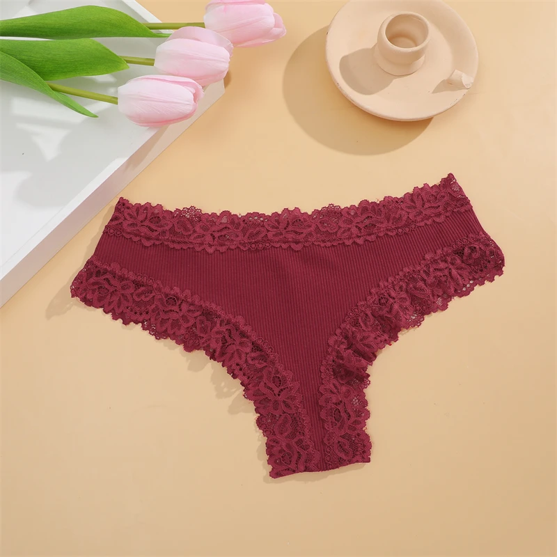 3PCS Women's Cotton Lace Brazilian Panties Soft Sexy Underwear Lingerie S-XL