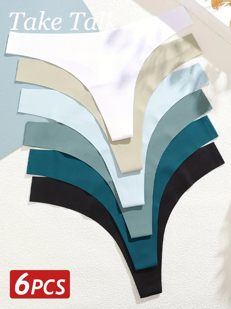 6PCS Ice Silk Seamless Thongs Panties for Women Sexy V-Waist G-String Bikini Female Soft Breathable Underwear Ladies Lingerie