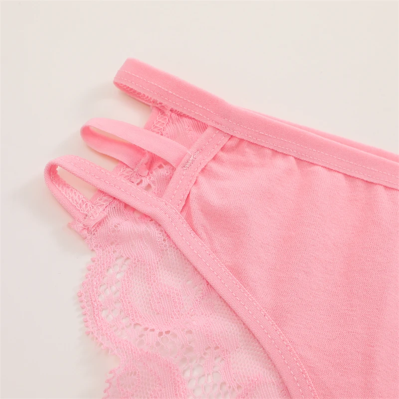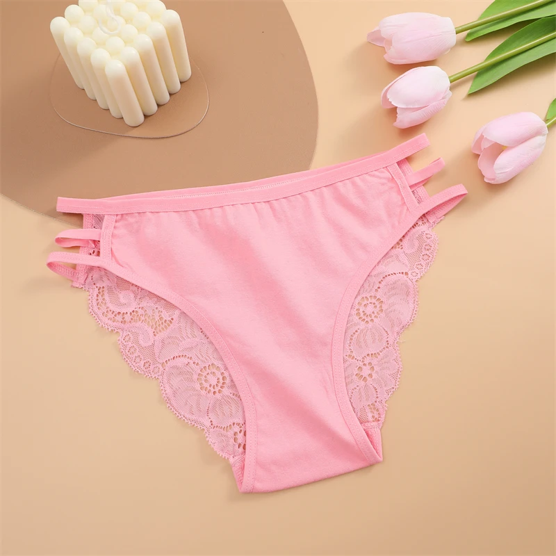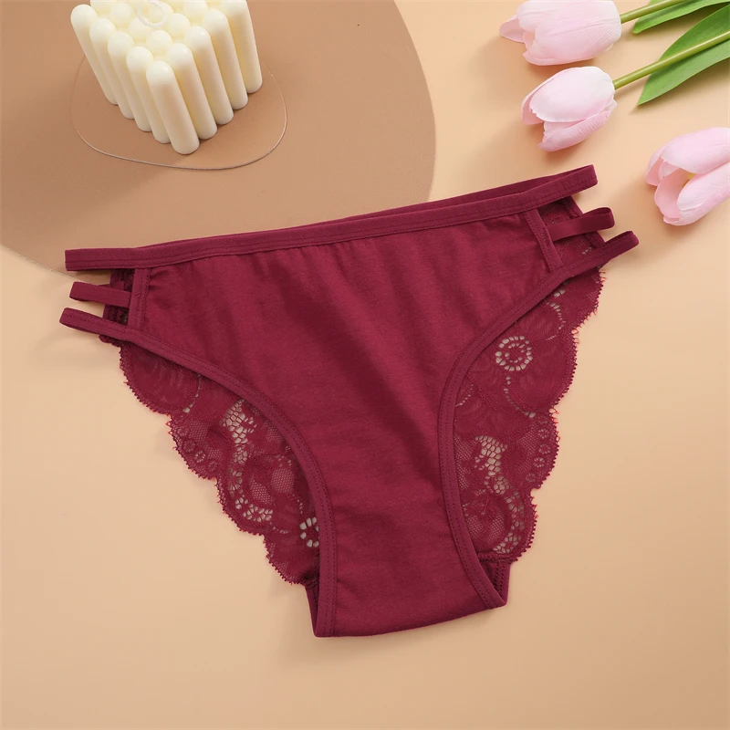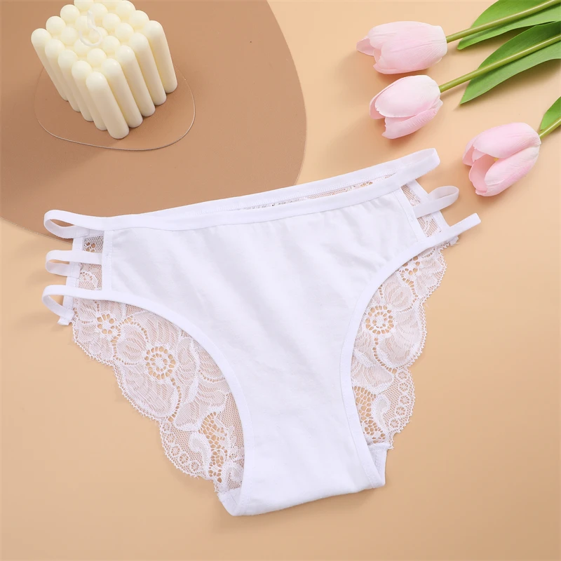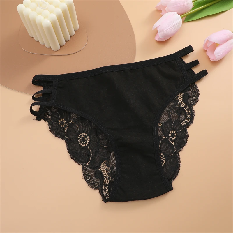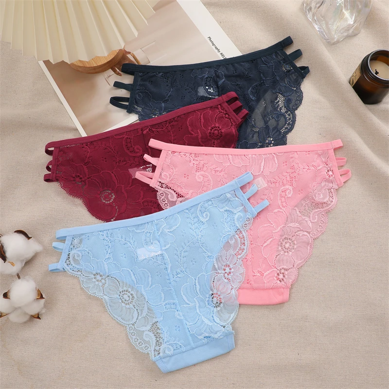 FINETOO 3PCS Women's Lace Floral Low-Waist Triple Belt Panties Soft Sexy Lingerie Underwear