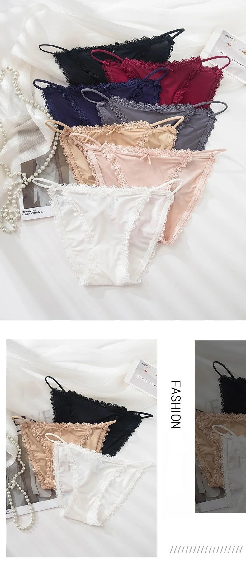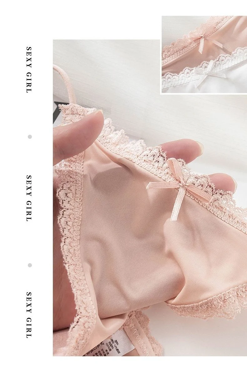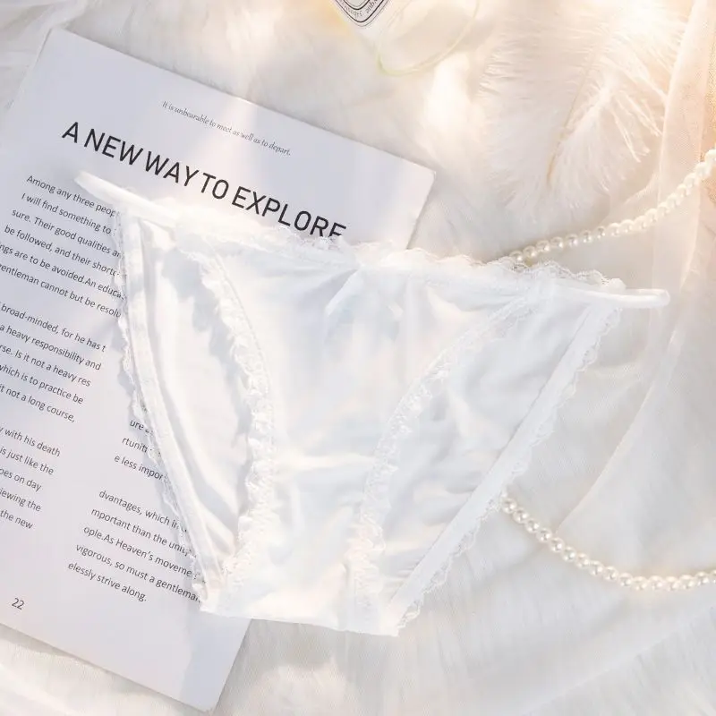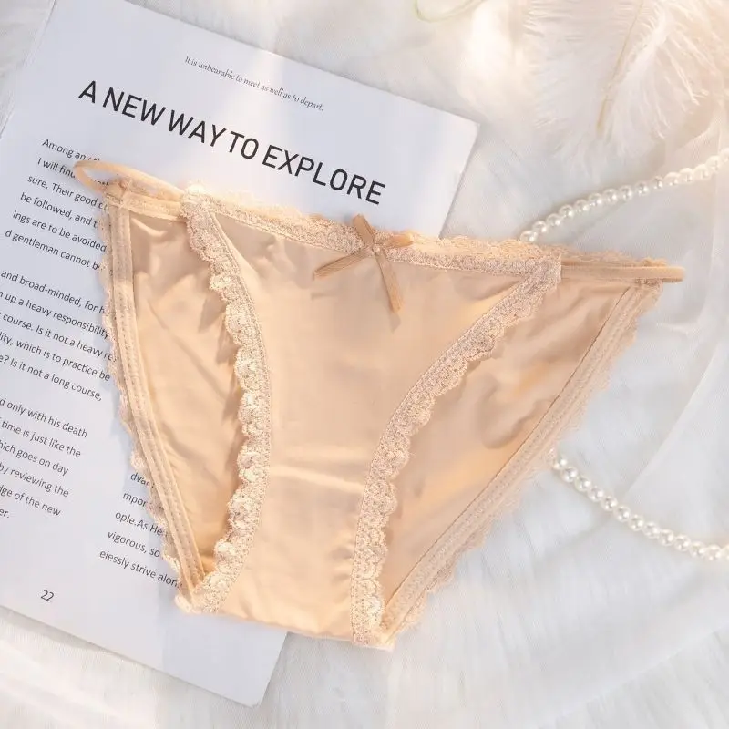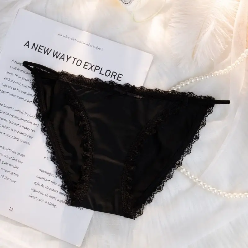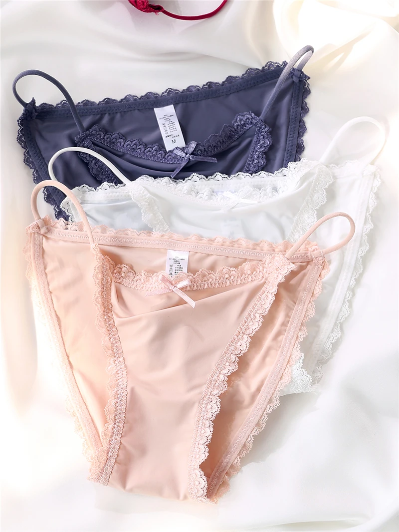 Ice Silk Women's Lace Low Waist Sexy Thong Panties Solid Color Bikini G-String Lingerie
