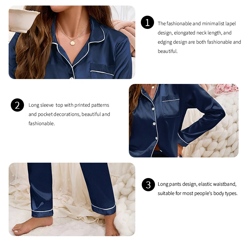 Autumn Women's Satin Pajama Set | Luxurious Long Sleeve Lapel Top & Pants Sleepwear Loungewear