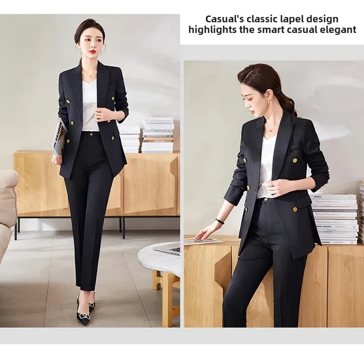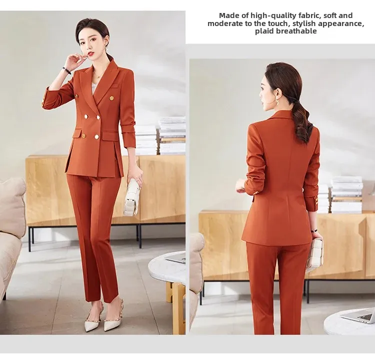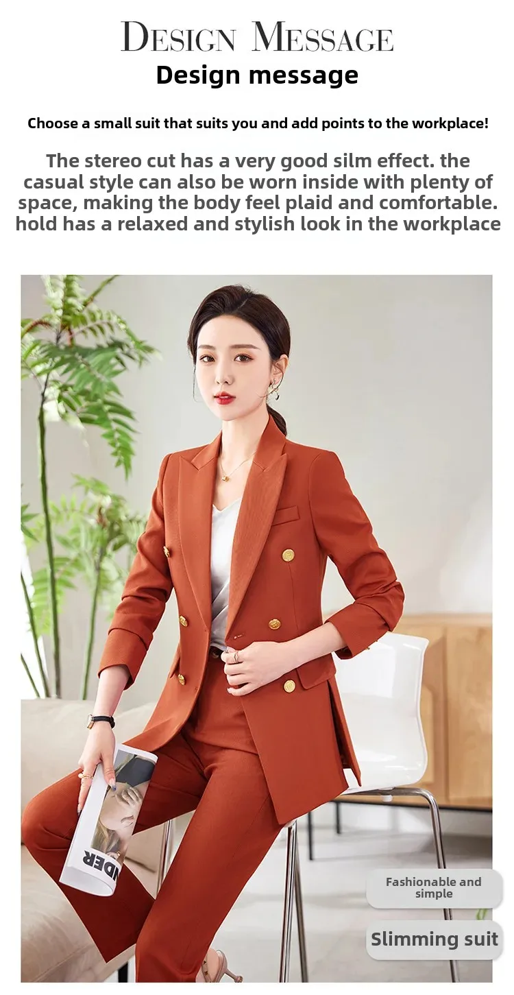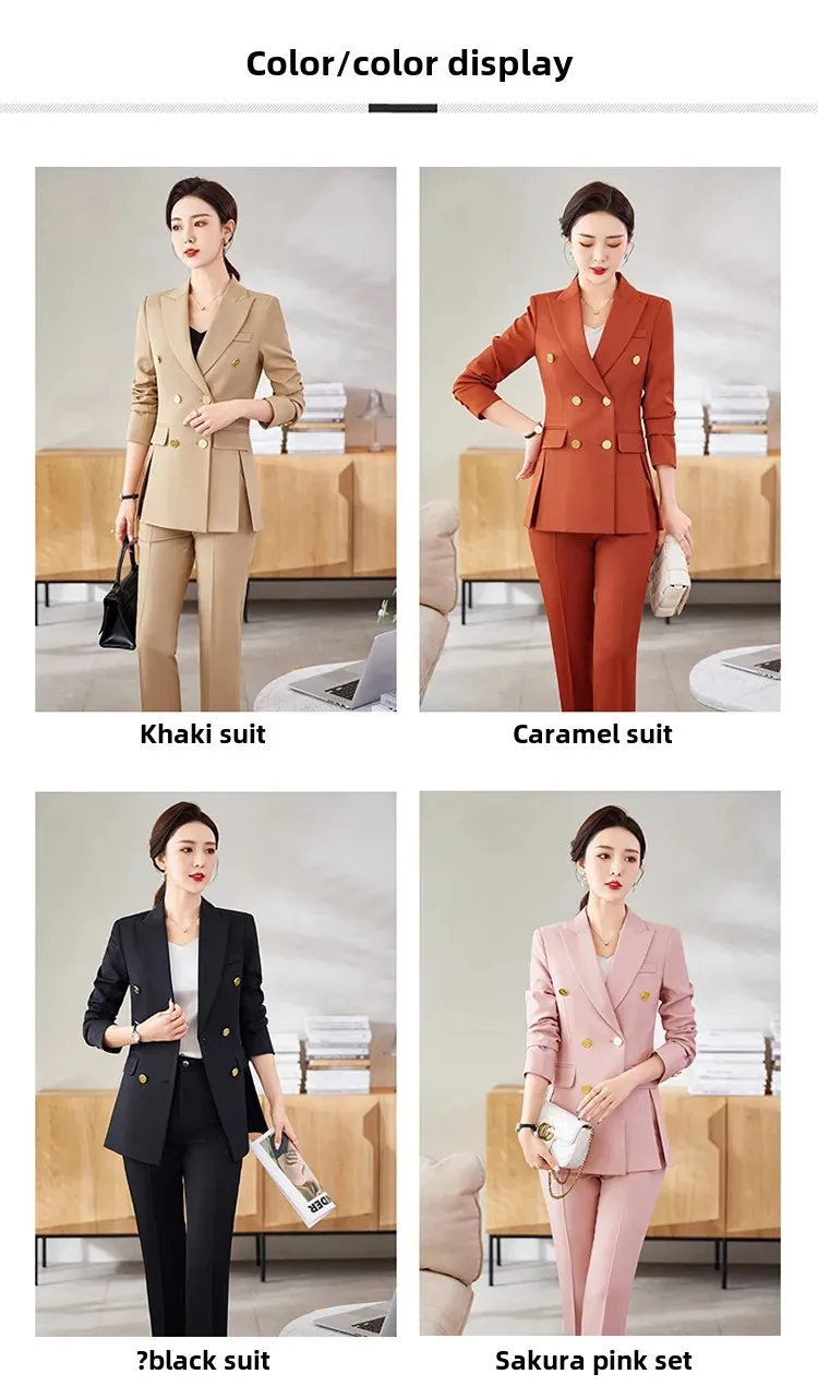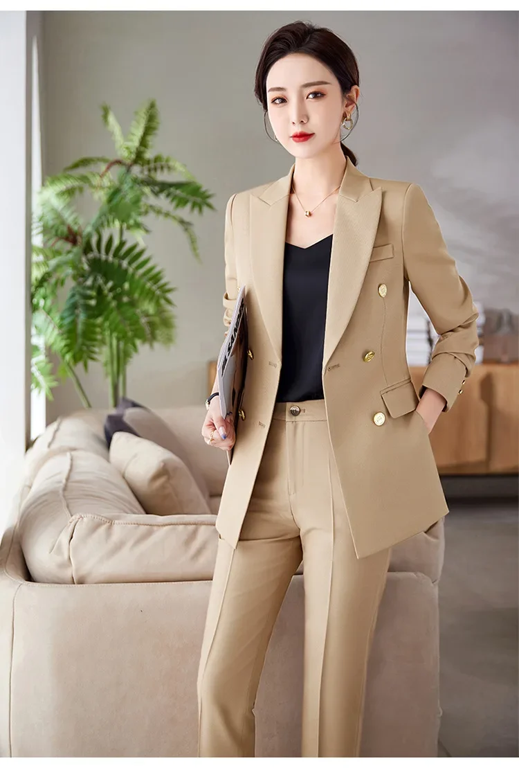 Women’s Khaki Western-Style Suit – Professional Double-Button Jacket Workwear