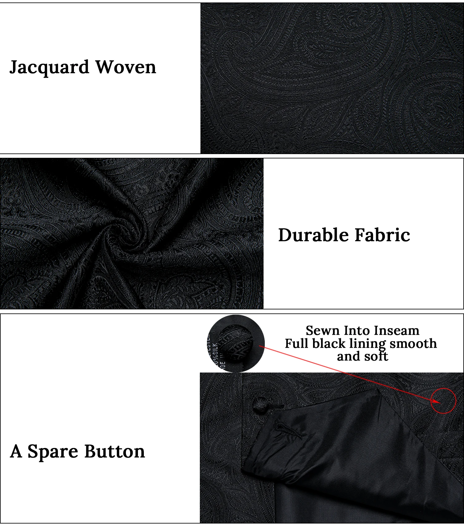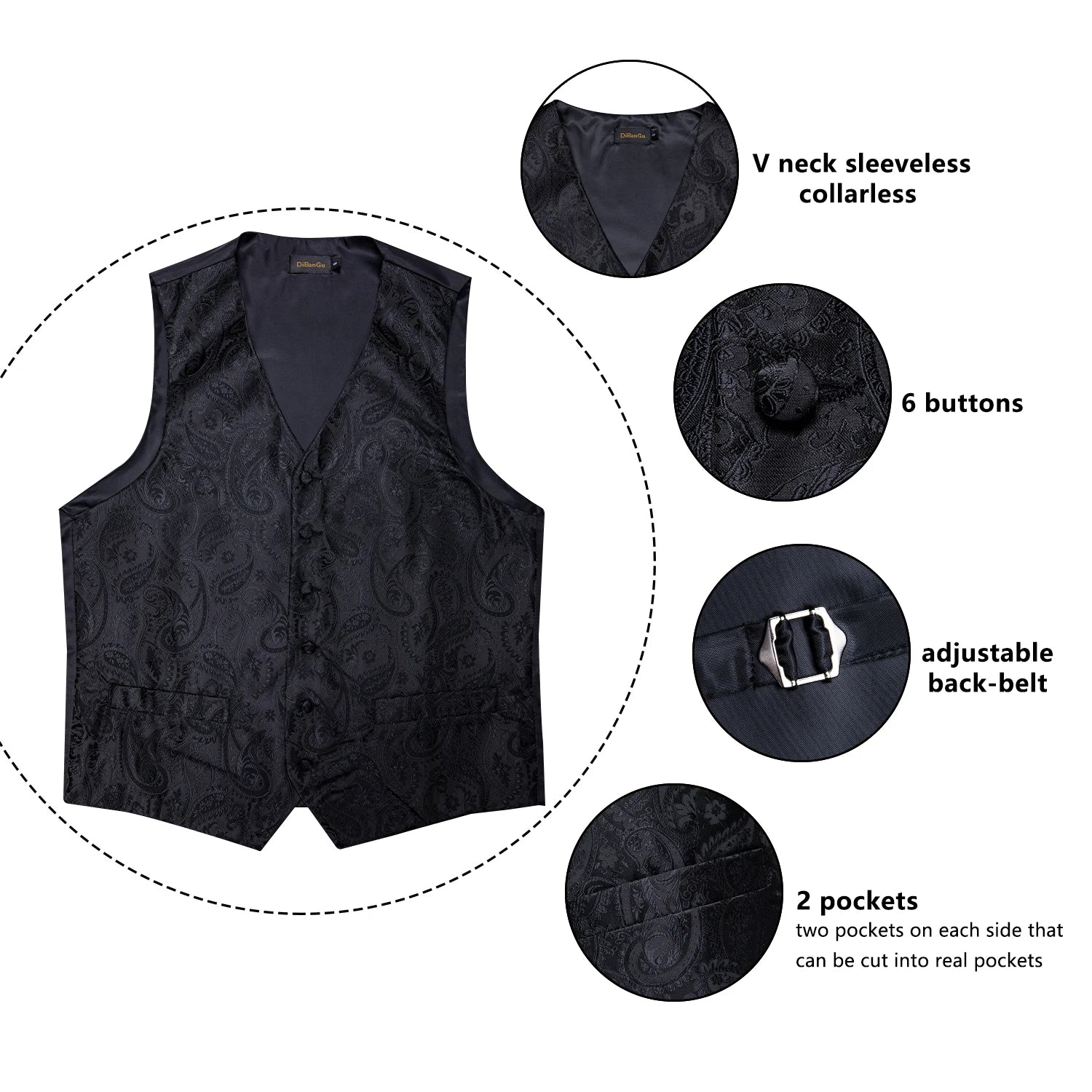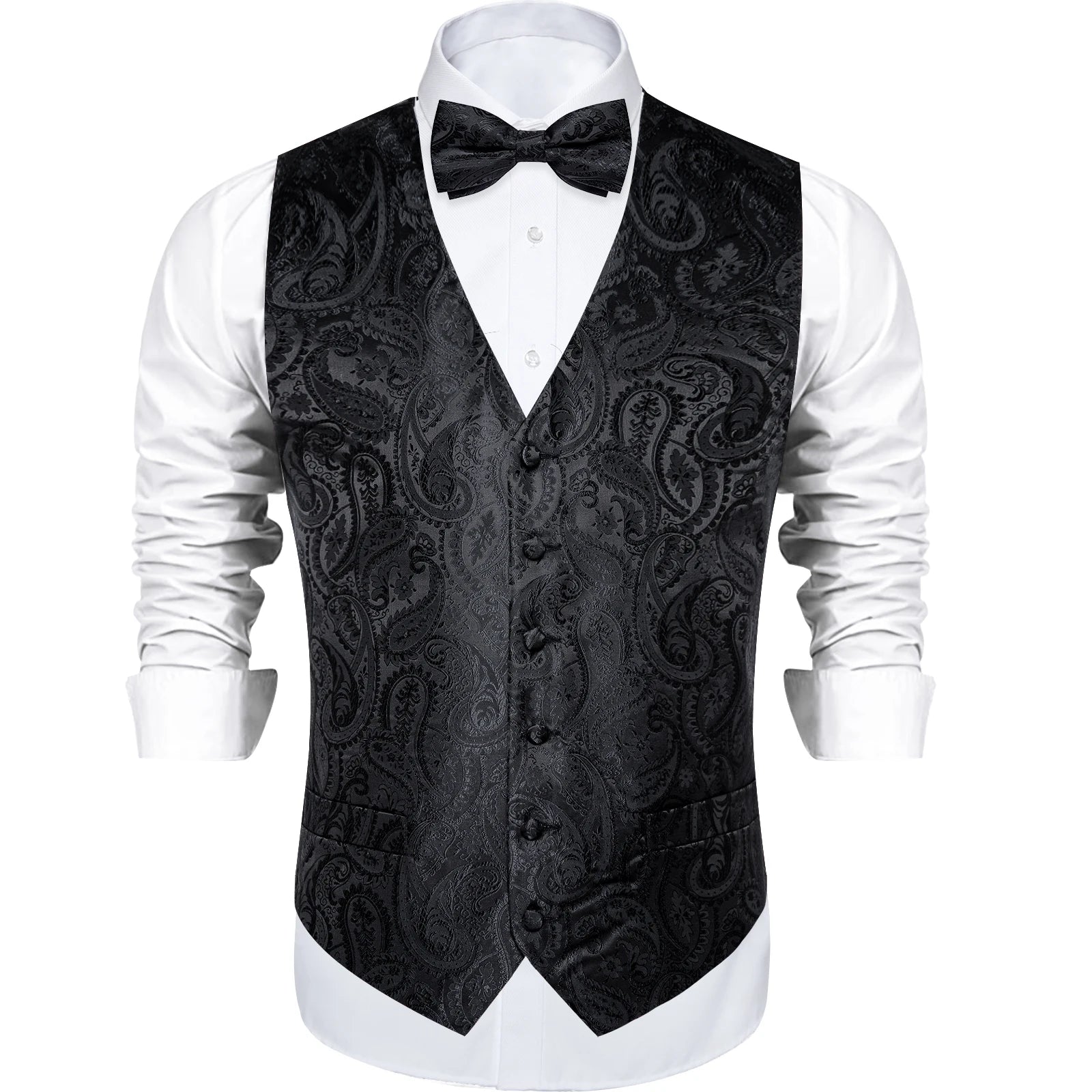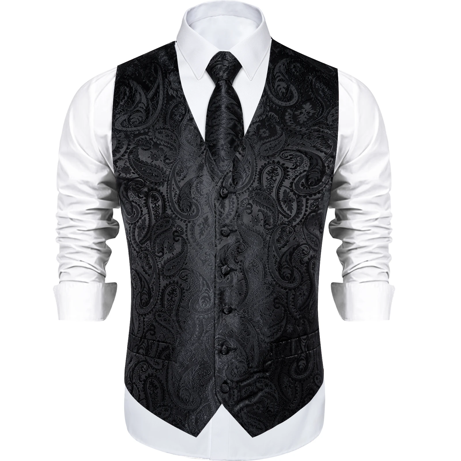 Men's Black Paisley Suit Vest with Necktie & Accessories – Formal Waistcoat for Wedding & Prom