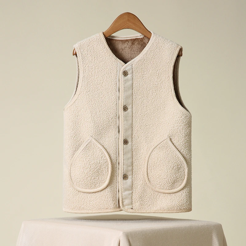 Winter Warm Fleece Vest for Mom Thickened Lamb Wool Waistcoat Plus Size Sleeveless Outerwear