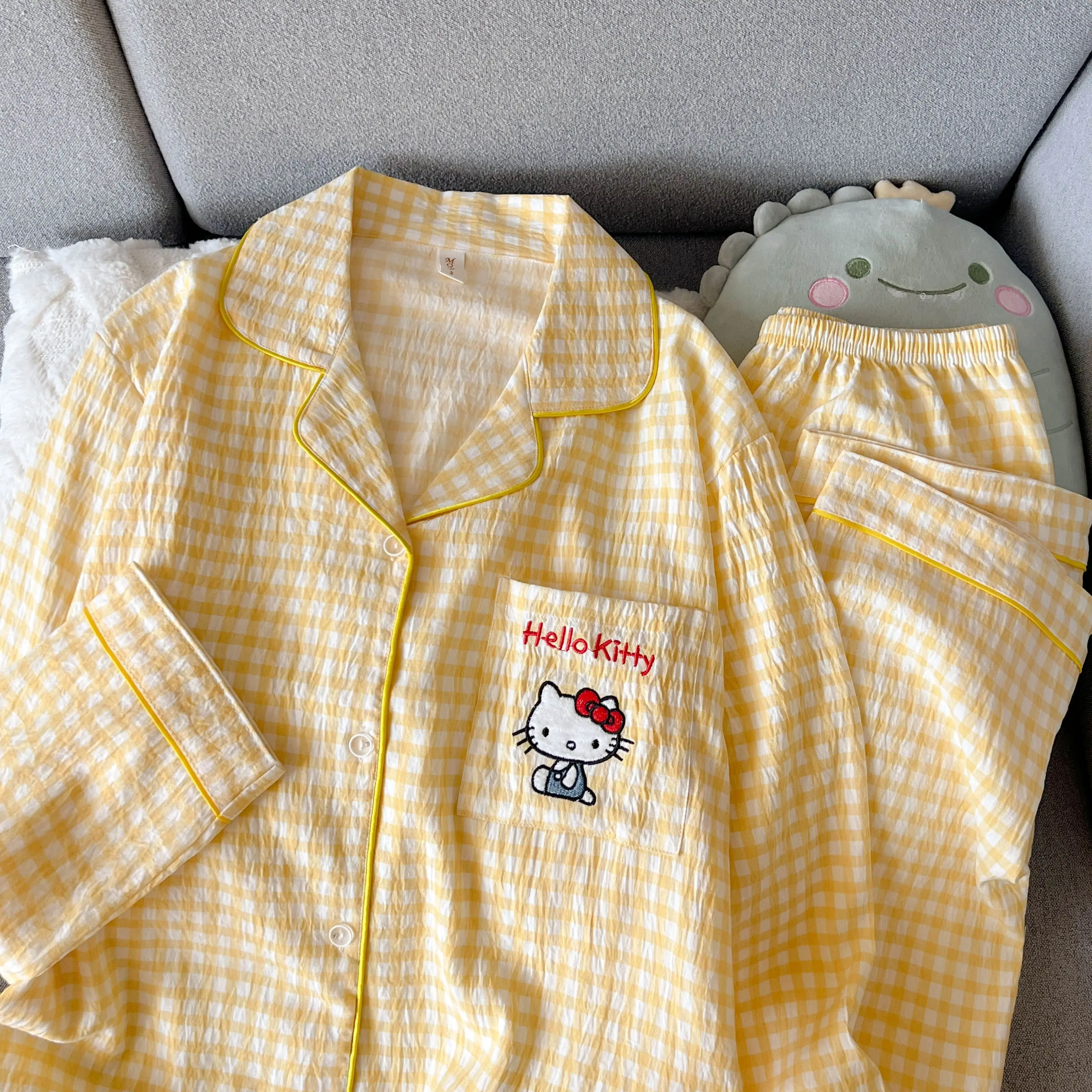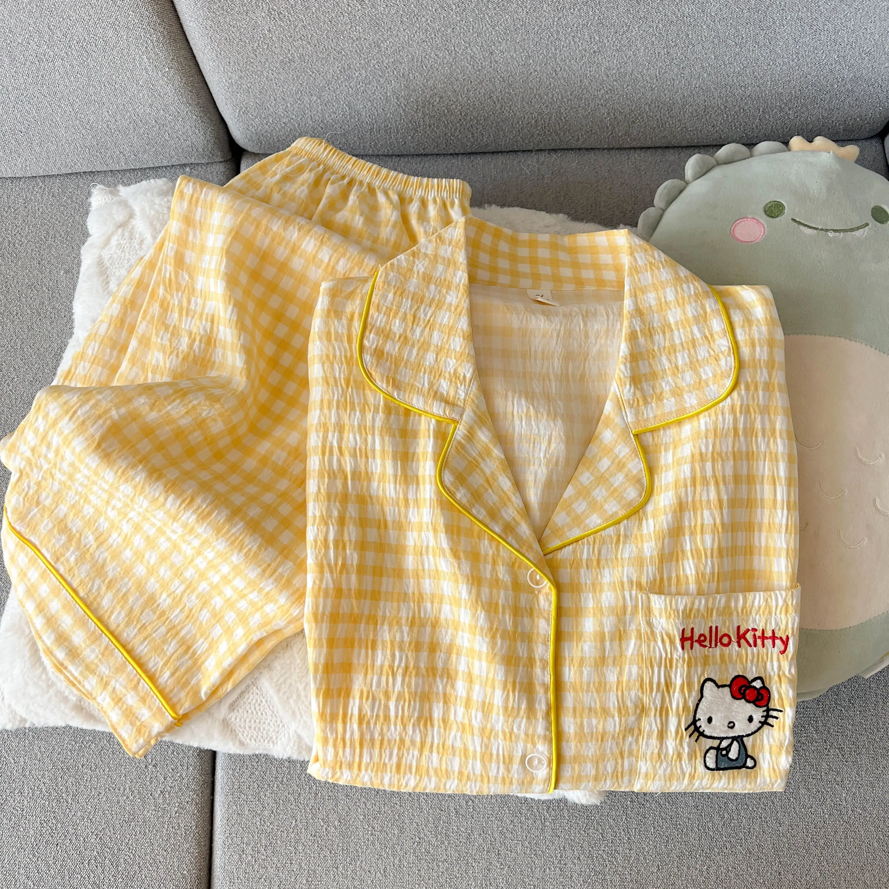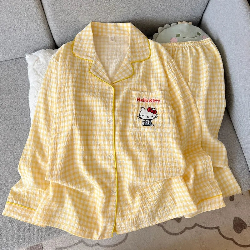 Autumn Women's Hello Kitty Pajama Set | Harajuku Style Plaid 2-Piece Cute Cartoon Sleepwear