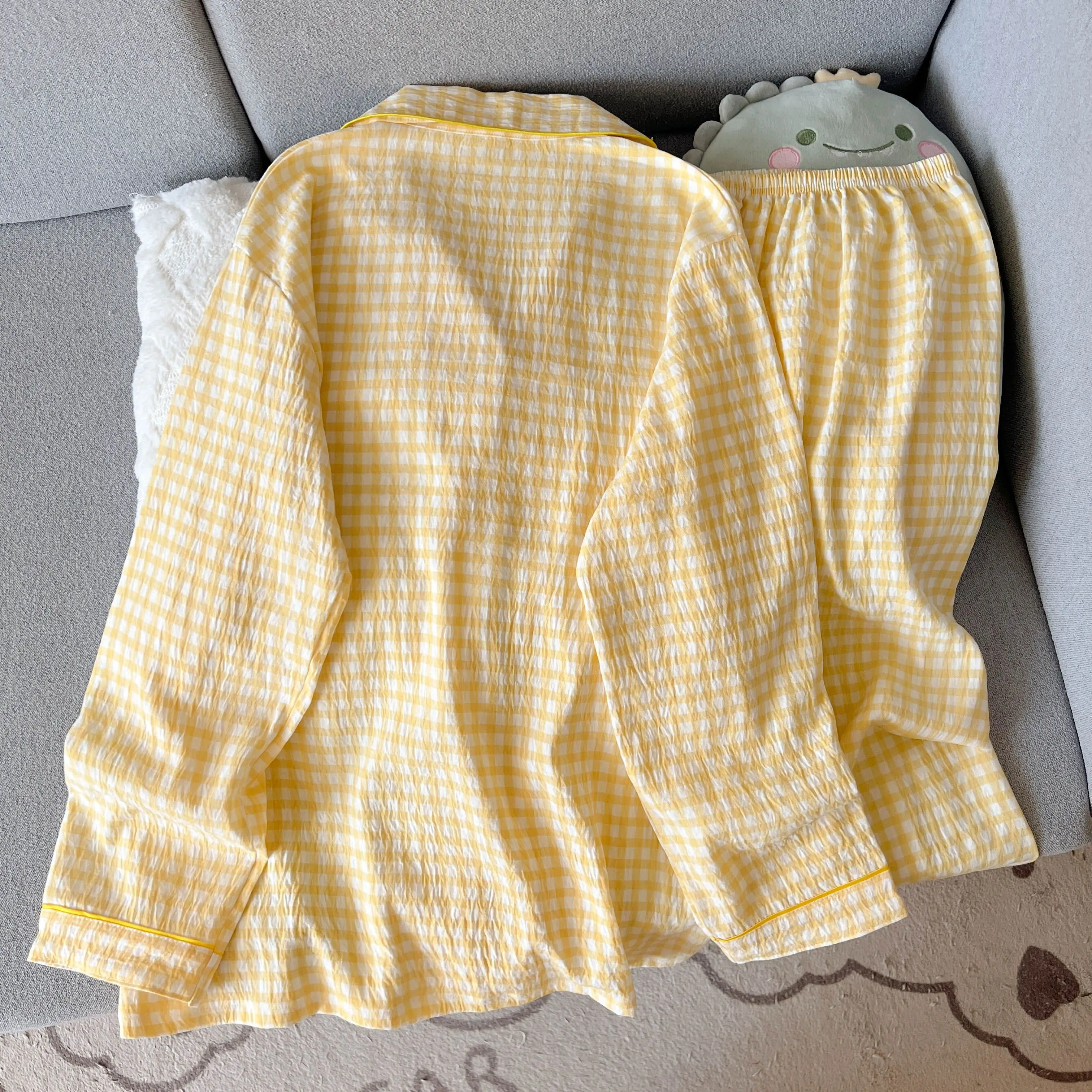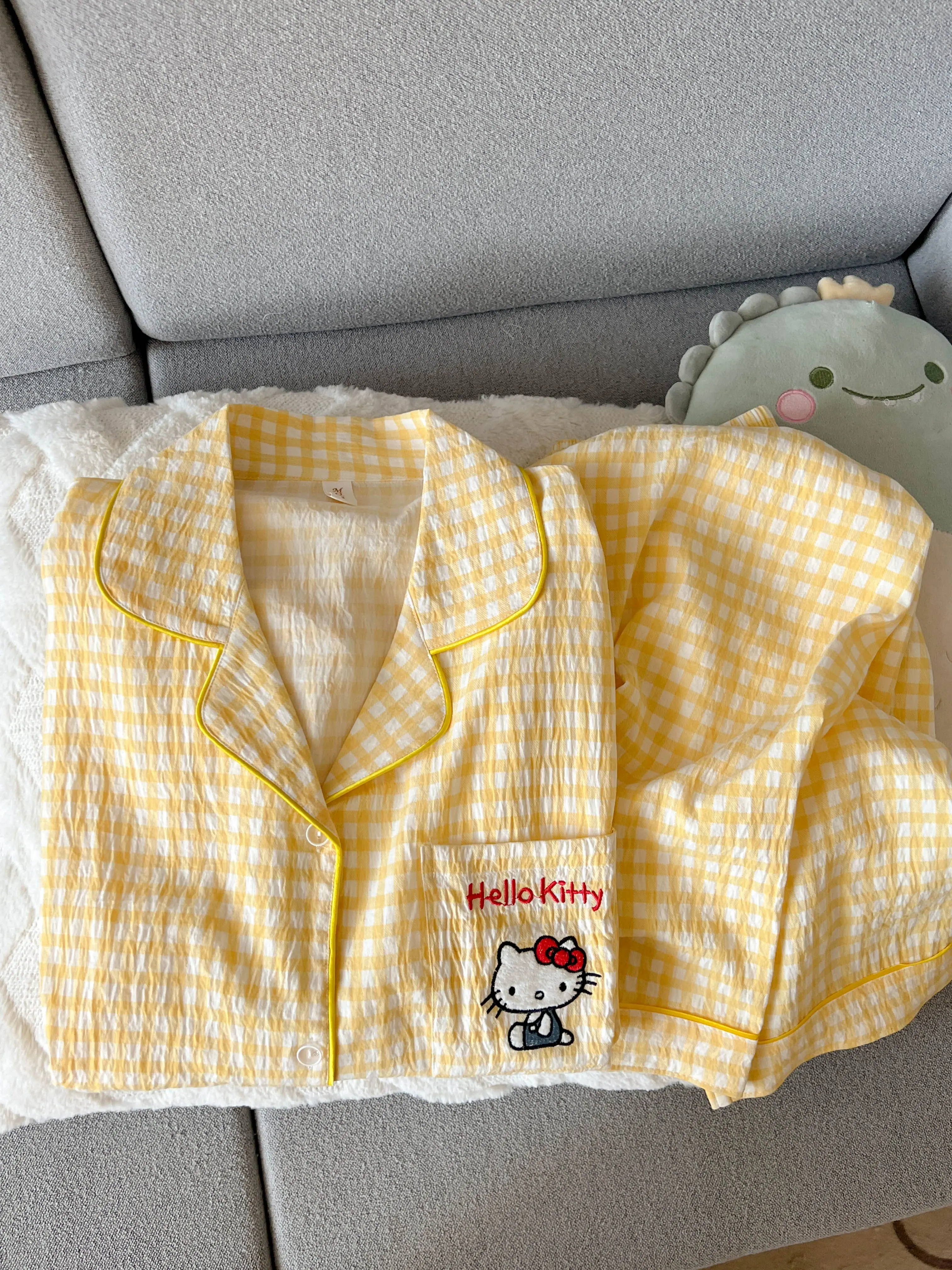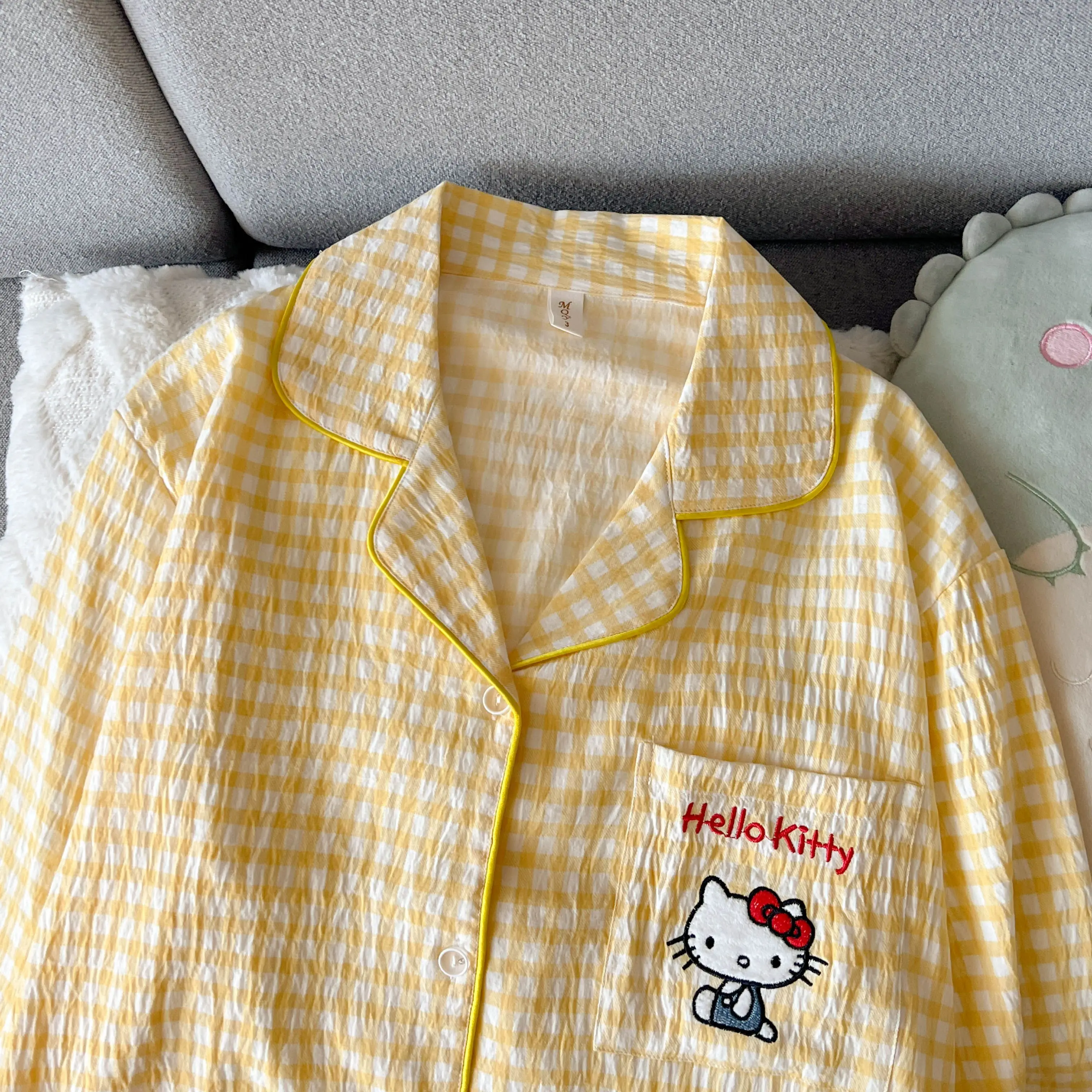 Autumn Women's Hello Kitty Pajama Set | Harajuku Style Plaid 2-Piece Cute Cartoon Sleepwear