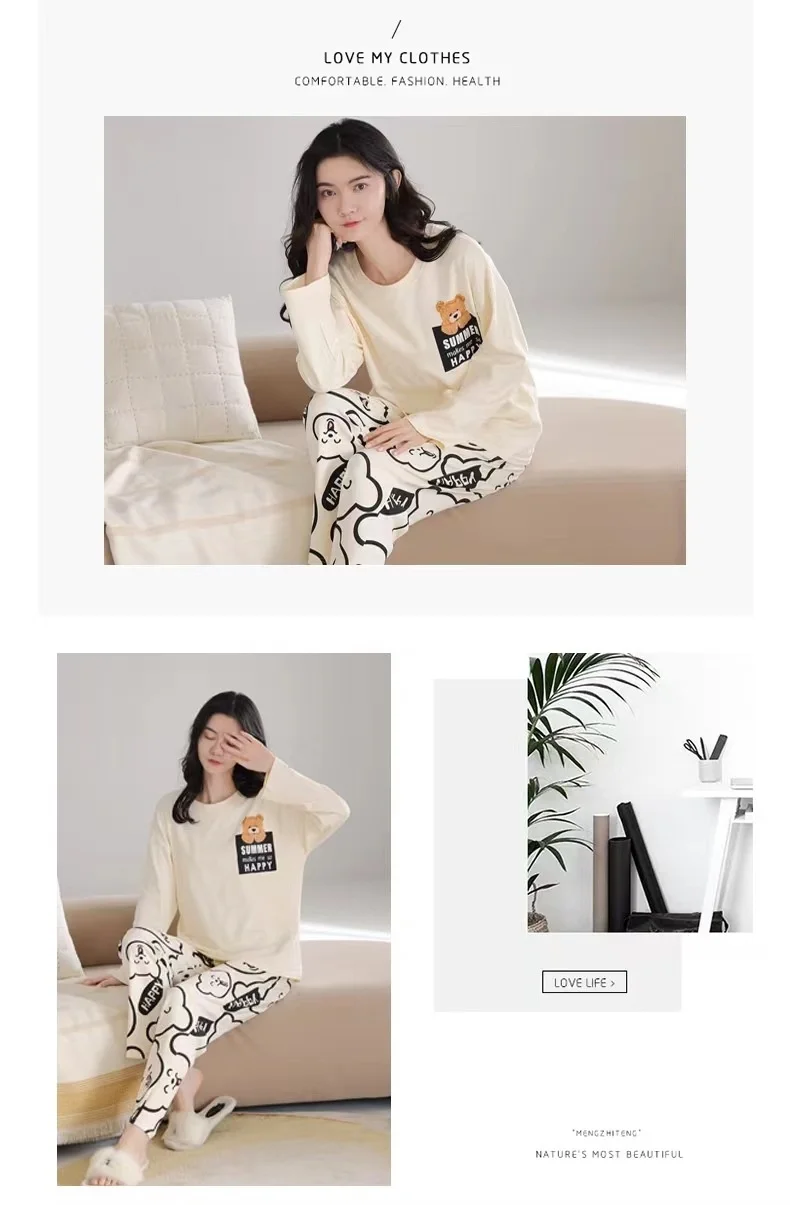 Name: School pajamas,women pajamas,Loungewear,Homewear,Winter Easter,Plus Size,Cartoon Bear,Flower,White,Yellow
