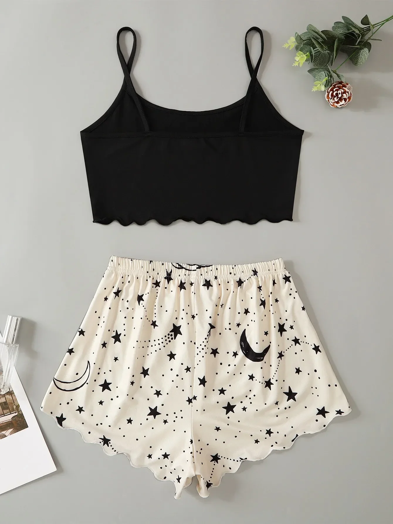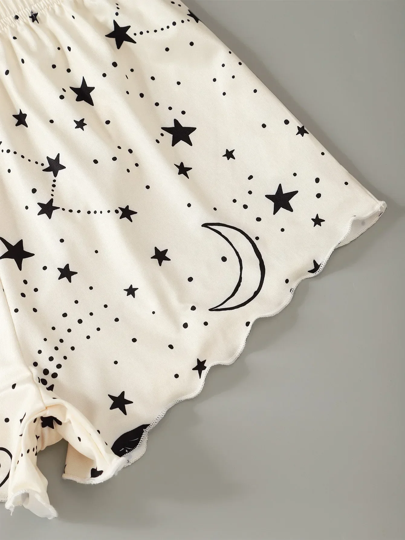 Summer Sexy Lingerie Pajama Set — Moon & Stars Print Crop Top with Shorts | Women’s Sleepwear Pyjamas