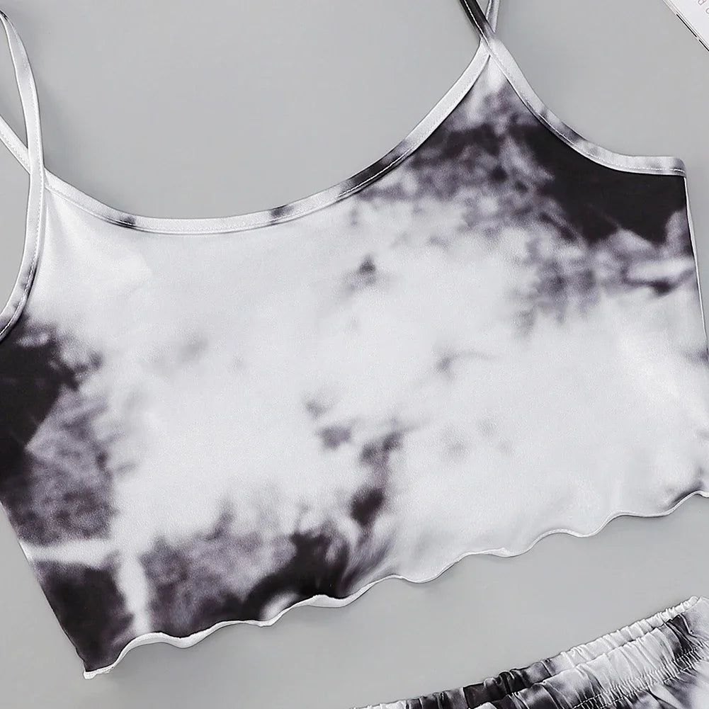 Women’s Sleepwear Pajama Set – Sexy Lingerie Tie-Dyed Print Sleeveless O-Neck Top & Shorts Nightwear