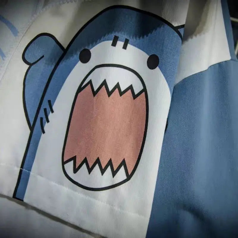New 2025 Spring Women Hooded Shark Print Japanese Style Patchwork Harajuku Hoodie Jacket