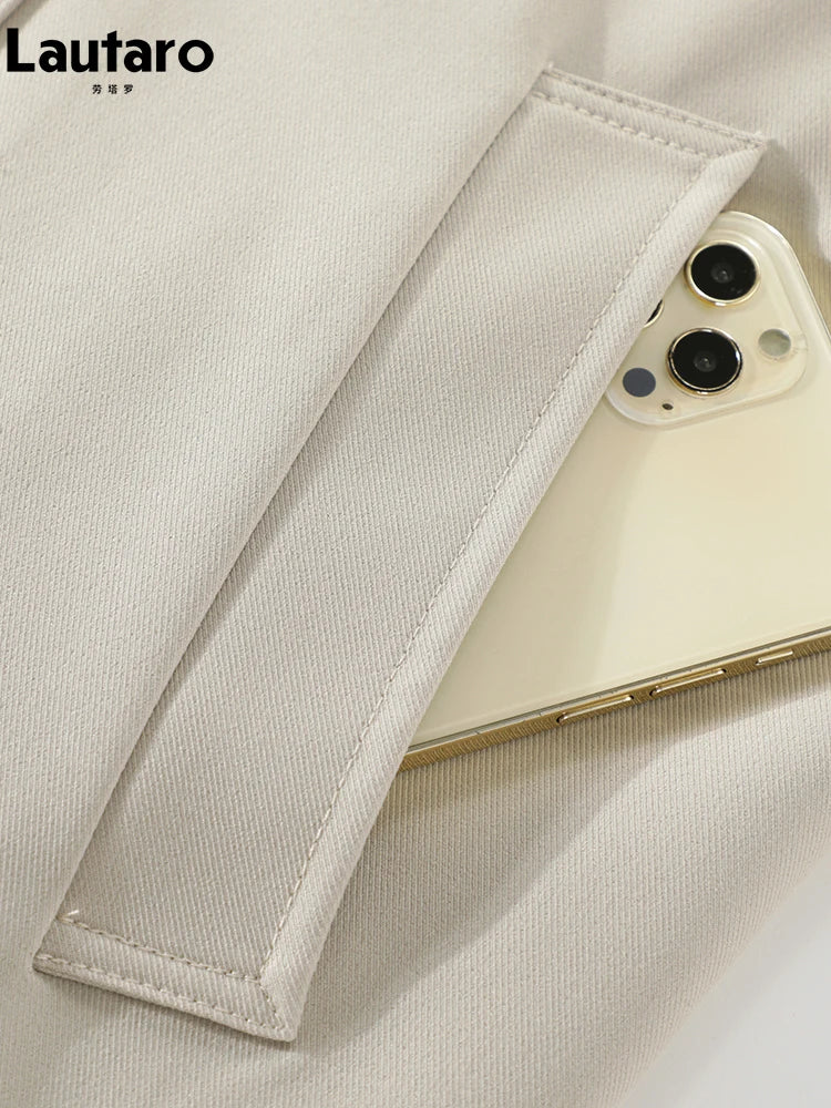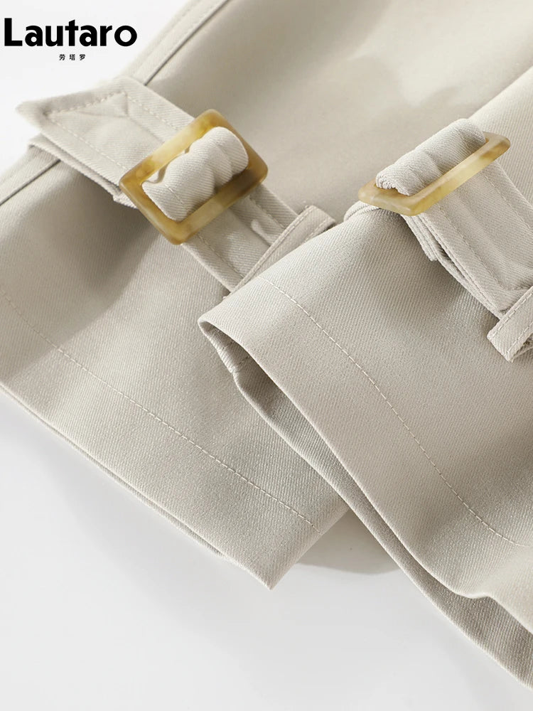Lautaro Spring Autumn Flowy Casual Trench Coat for Women Belted Double-Breasted Loose Luxury Designer Fake 2-Piece Coat