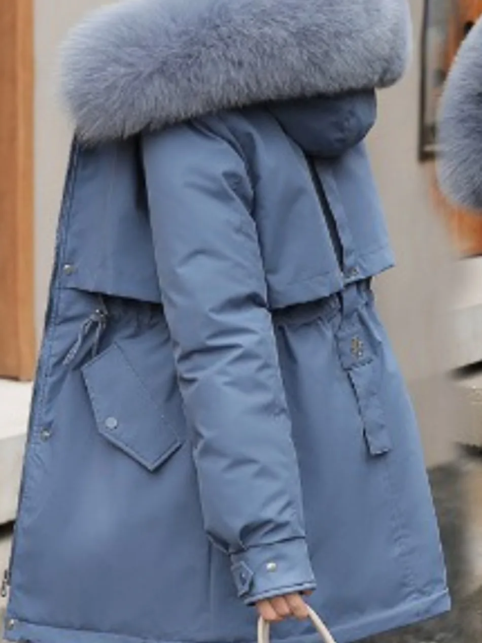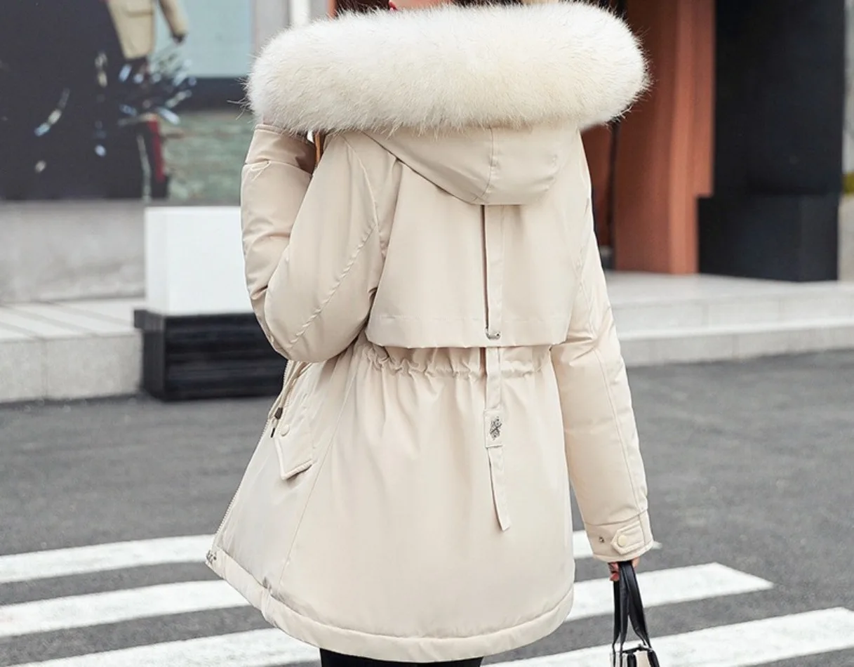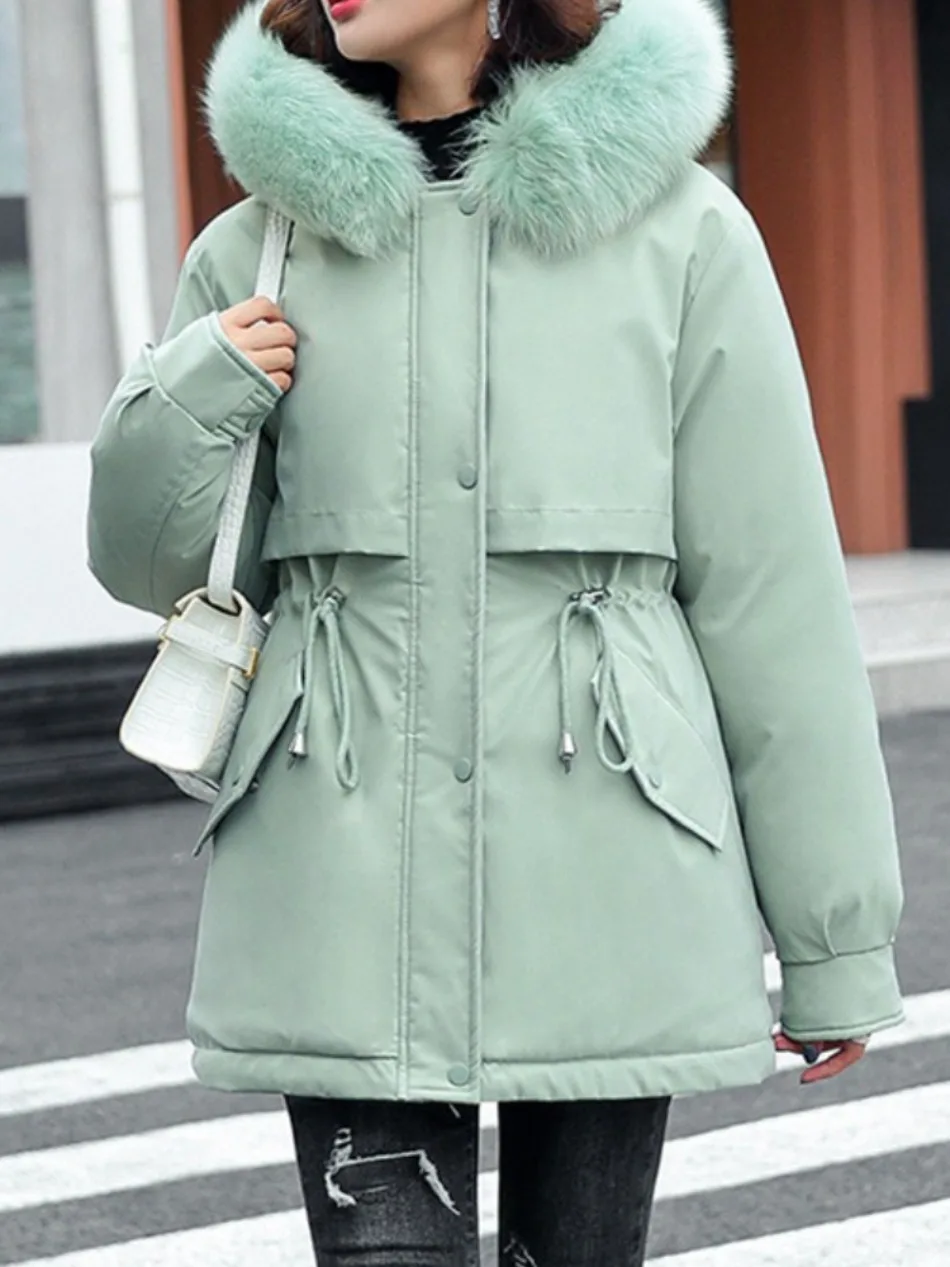 New Women Parka Long Coat with Wool Liner, Hooded Winter Jacket, Slim Fit with Fur Collar, Warm Snow Wear Padded Clothes