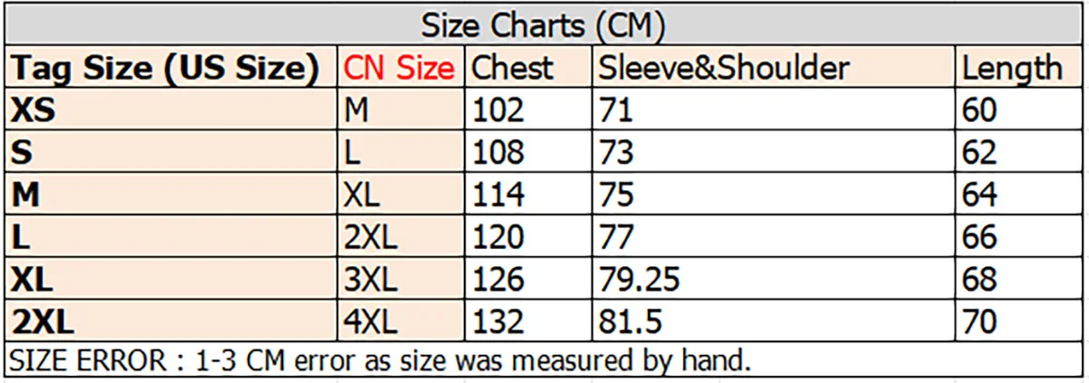 2.Please Allow 1-3cm Difference in size Measurement.if you does not make sure about size, please tell us your height and weight for size recommendation.