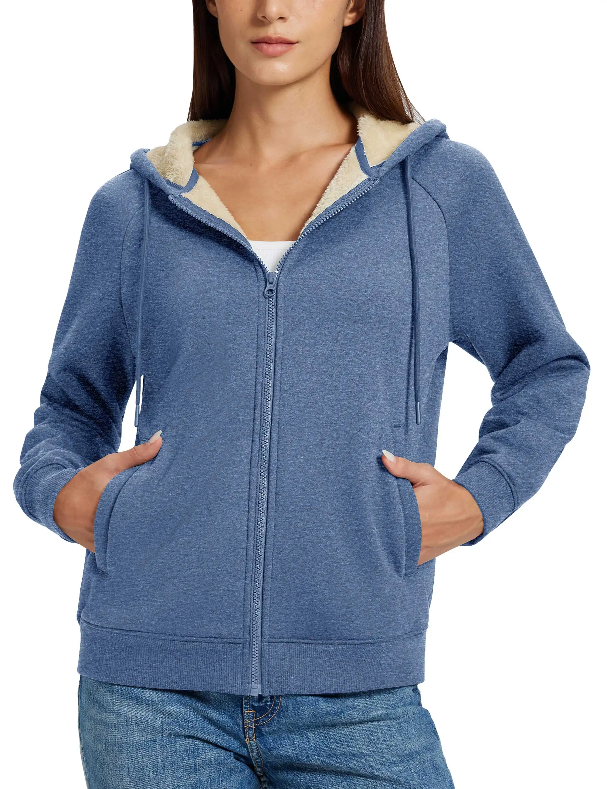 TACVASEN Women's Sherpa-Lined Full-Zip Hoodie Jacket Winter Warm Casual Outdoor Sweatshirt with Pockets