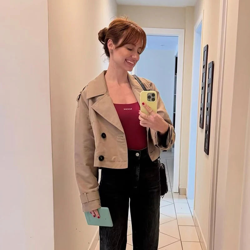 Women's Double-Breasted Short Trench Coat Turn-Down Collar Long Sleeve Vintage Chic Outerwear